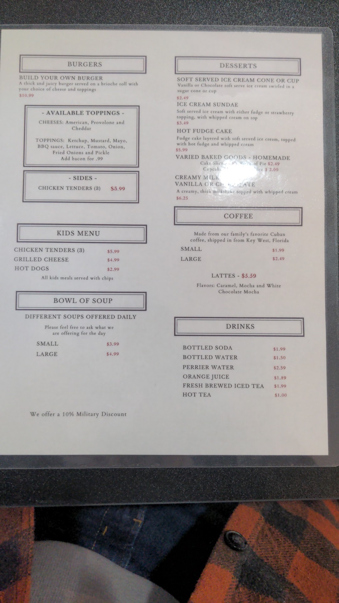 Good food reasonable prices quick and friendly service.