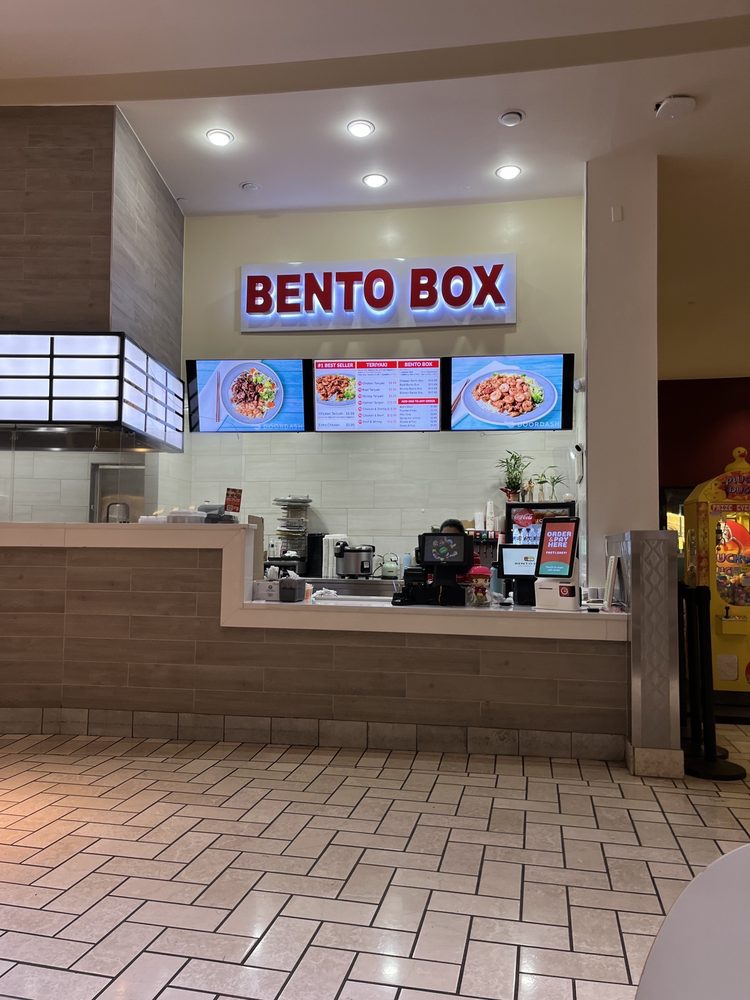 Bento Box offers tasty and delicious food with fresh ingredients and great flavors. The meals are well-balanced and decent for bento, though some find the style very Americanized. The chicken teriyaki is a favorite, served with good rice, pretty good veggies, and really good noodles for a small extra charge. Portions are large and just right, often making two meals, and are reasonably priced for the taste. The presentation looks fantastic. It is a perfect spot for a quick and healthy lunch or dinner, described as a slightly cheaper, slimmed-down version of similar restaurants. It is a favorite spot in the mall food court. Service can take a little long but comes through, and staff are noted as nice and sweet. The environment is casual with not much table service, as it is located in the mall. Some minor critiques mention the teriyaki sauce is a bit light and a signature pink sauce is a little too liquid.