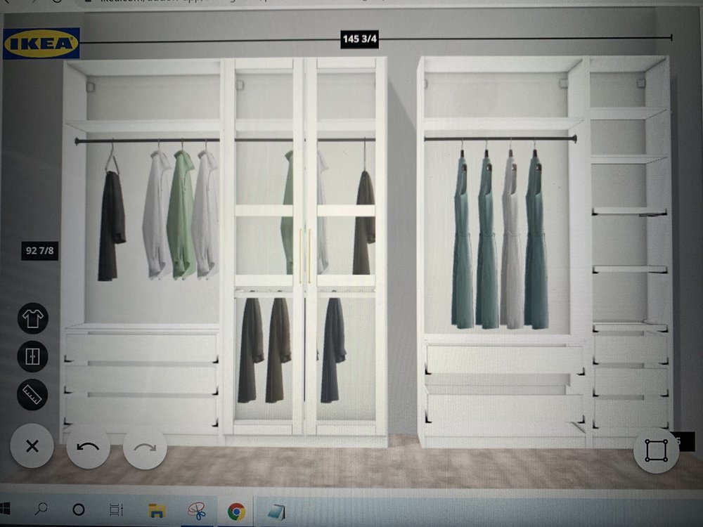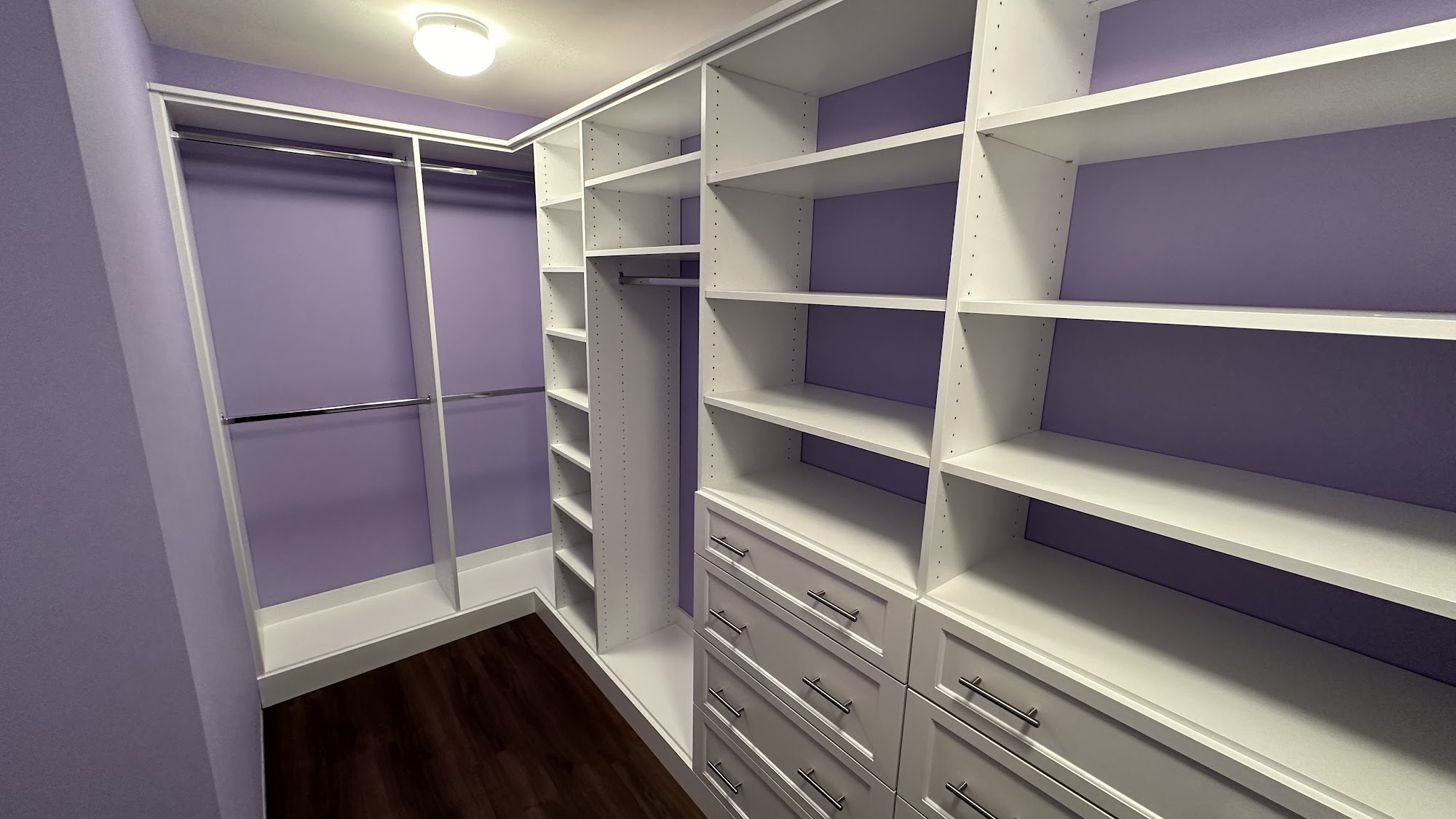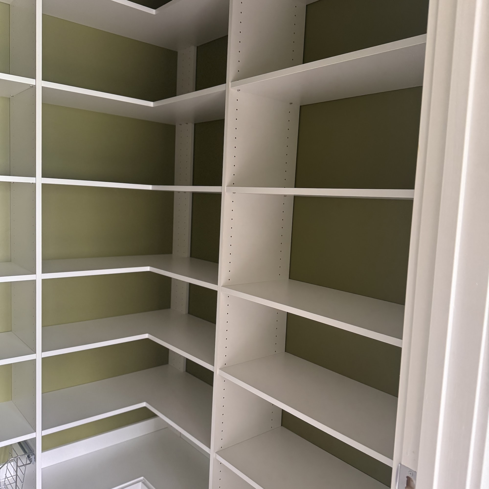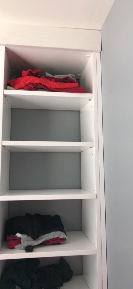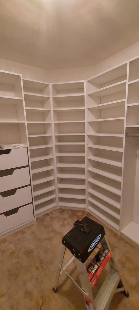 We are loving our new closet installation designed by Kimberly. The suggestion of painting the walls blue behind the white shelves looks amazing too! The installation went smoothly and we’re looking forward to using the nice new and organized space :-)