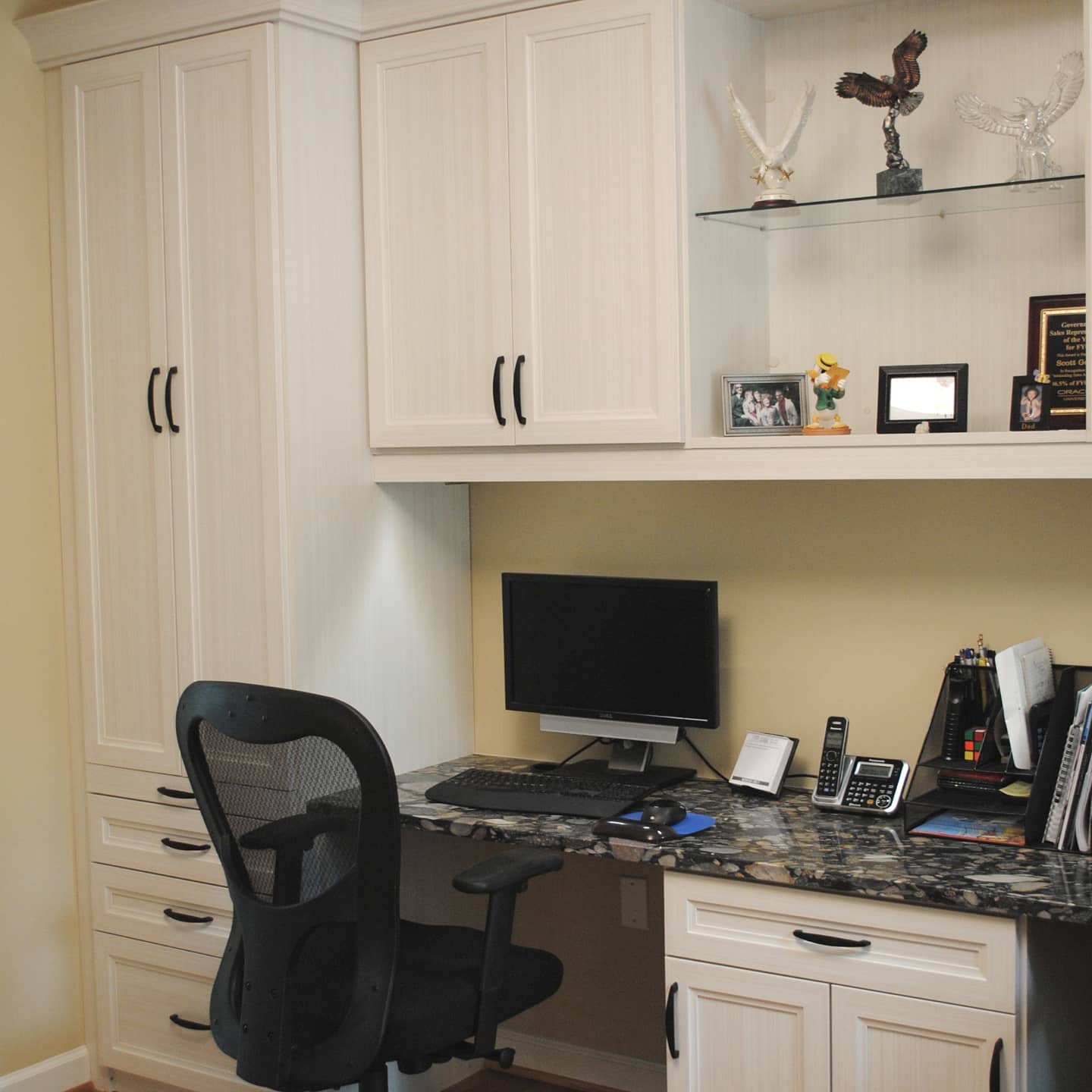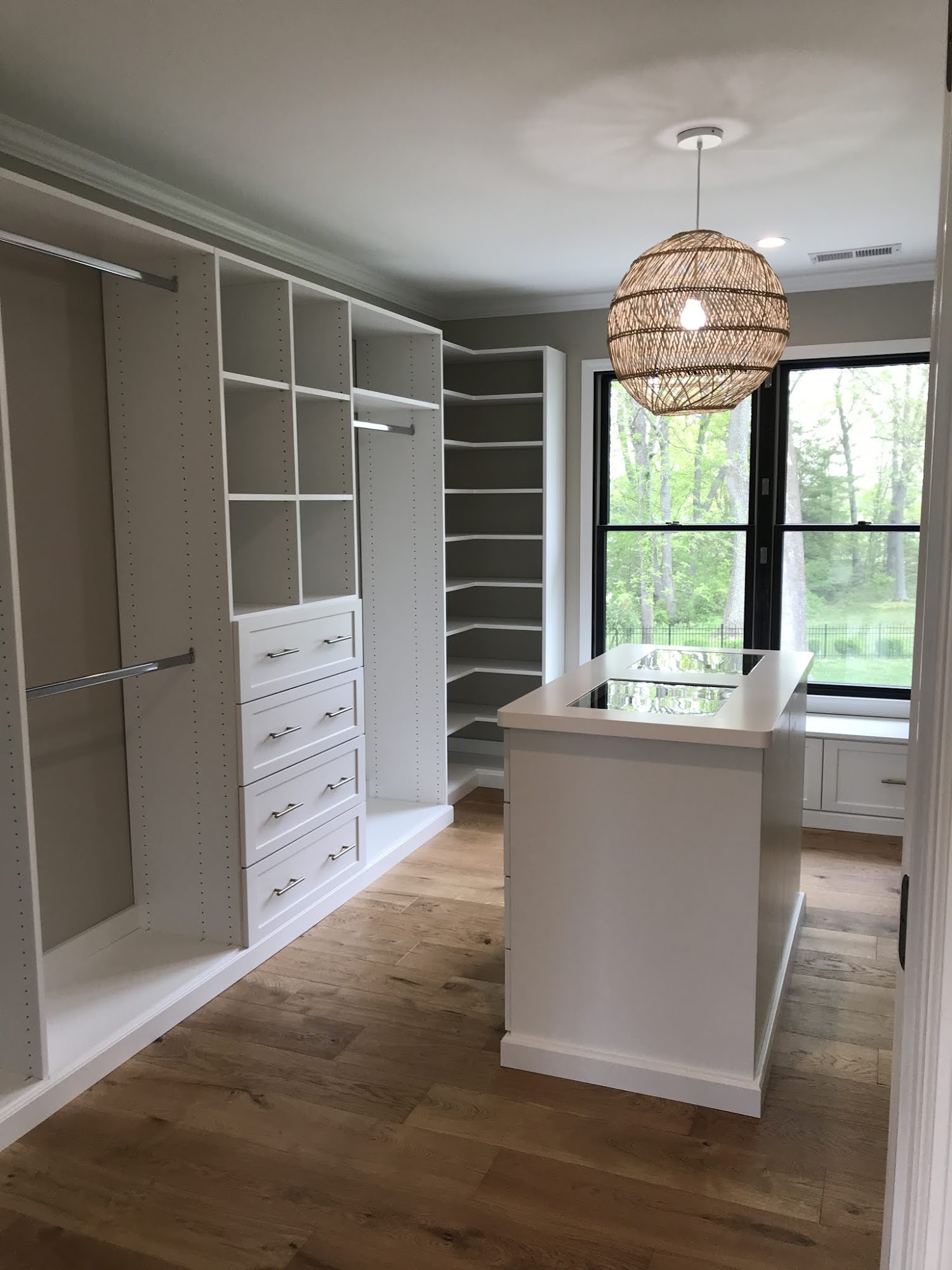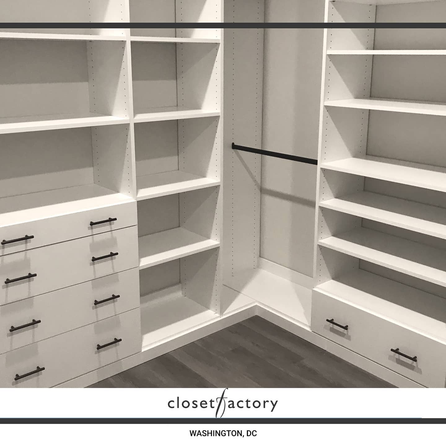We are loving our new closet installation designed by Kimberly. The suggestion of painting the walls blue behind the white shelves looks amazing too! The installation went smoothly and we’re looking forward to using the nice new and organized space :-)