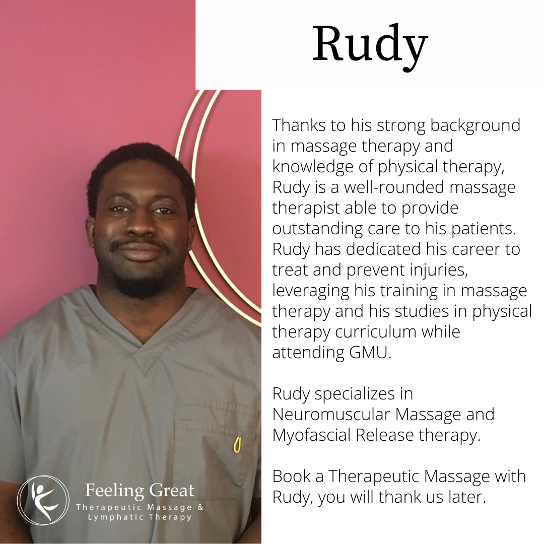 Wonderful therapeutic massage from Rudy and the staff and facilities are lovely. Can't imagine going anywhere else.