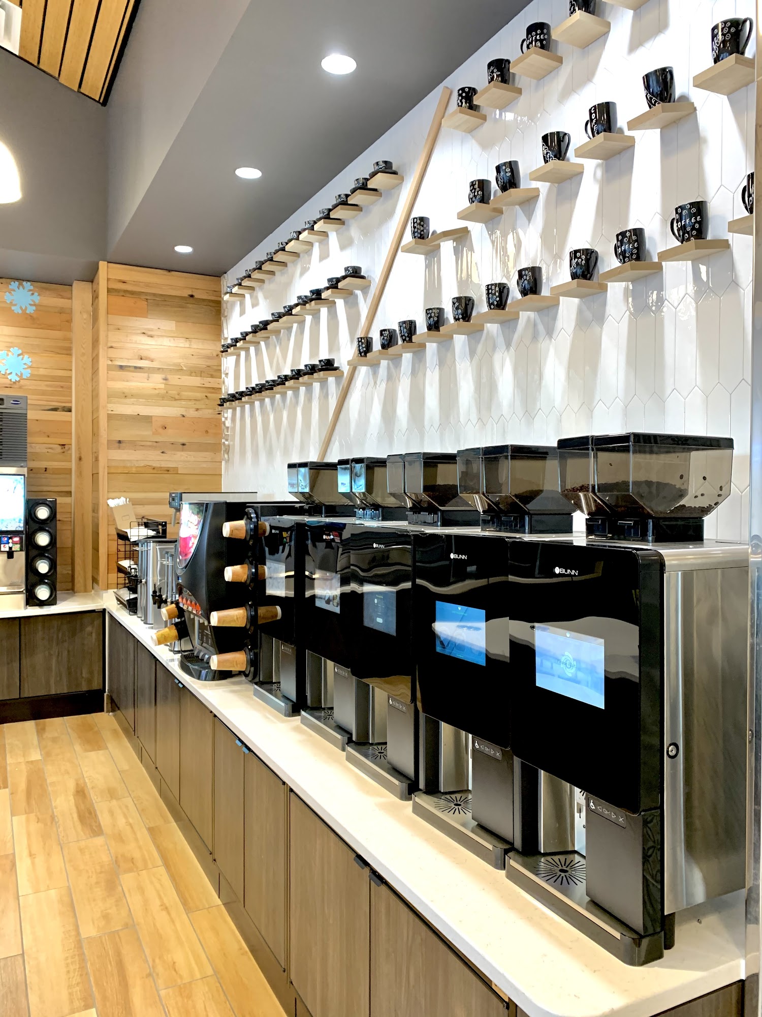 HAS SLURPY TYPE DRINKS...COULD USE FOUNTAIN DRINKS I DIDN'T SEE ANY BUT WOW... VERY NICE LOCATION