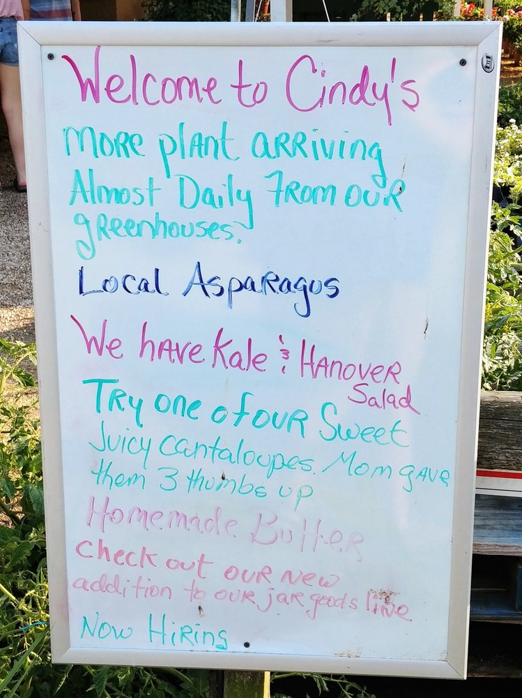 Cindy's Produce is a family-owned farm and greenhouse offering a wide variety of fresh, homegrown fruits, vegetables, flowers, and plants. Customers can find seasonal produce such as squash, melons, grapes, peaches, blueberries, strawberries, tomatoes, zucchinis, and sweet corn, all of high quality and at good prices. The farm also sells fresh local eggs, jams, jellies, sauces, salsas, honey, pickles, fruit butters, and more. During the fall, they offer pumpkins, Thanksgiving vegetables, and Virginia-grown Christmas trees. The plants include beautiful mums and neat snapdragons. Visitors consistently praise the friendly staff and the pleasant shopping experience. Many mention the excellent taste of the peaches, cantaloupe, and blueberries, and some have found unique items like green bean chips that they loved. Overall, Cindy's Produce is a favorite local spot for fresh produce, plants, and friendly service.