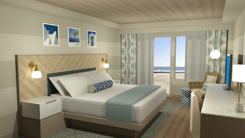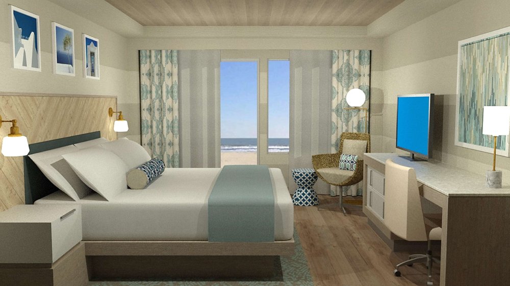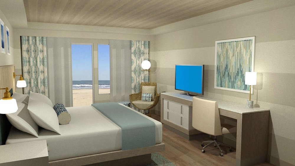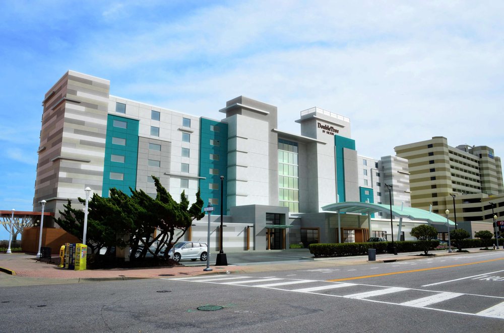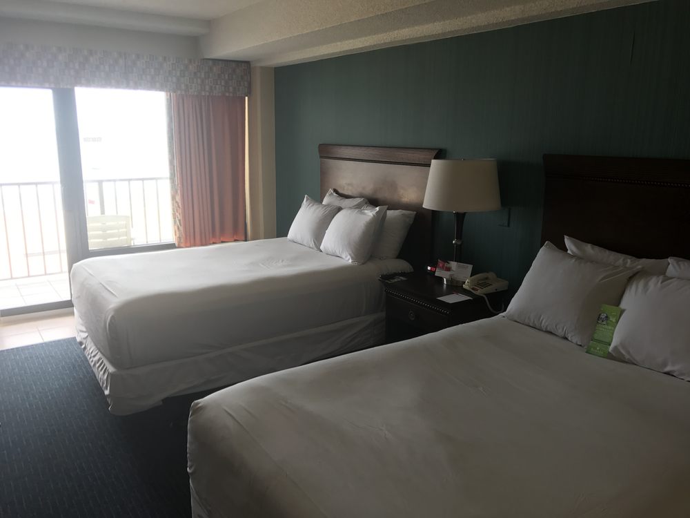 Actually, this is the DoubleTree Hotel by Hilton Oceanfront. Oceanview room, balcony with 2 comfortable chairs and table. View of sunrise is very nice. Very small elevators though. Plenty of luggage racks which is always a plus.