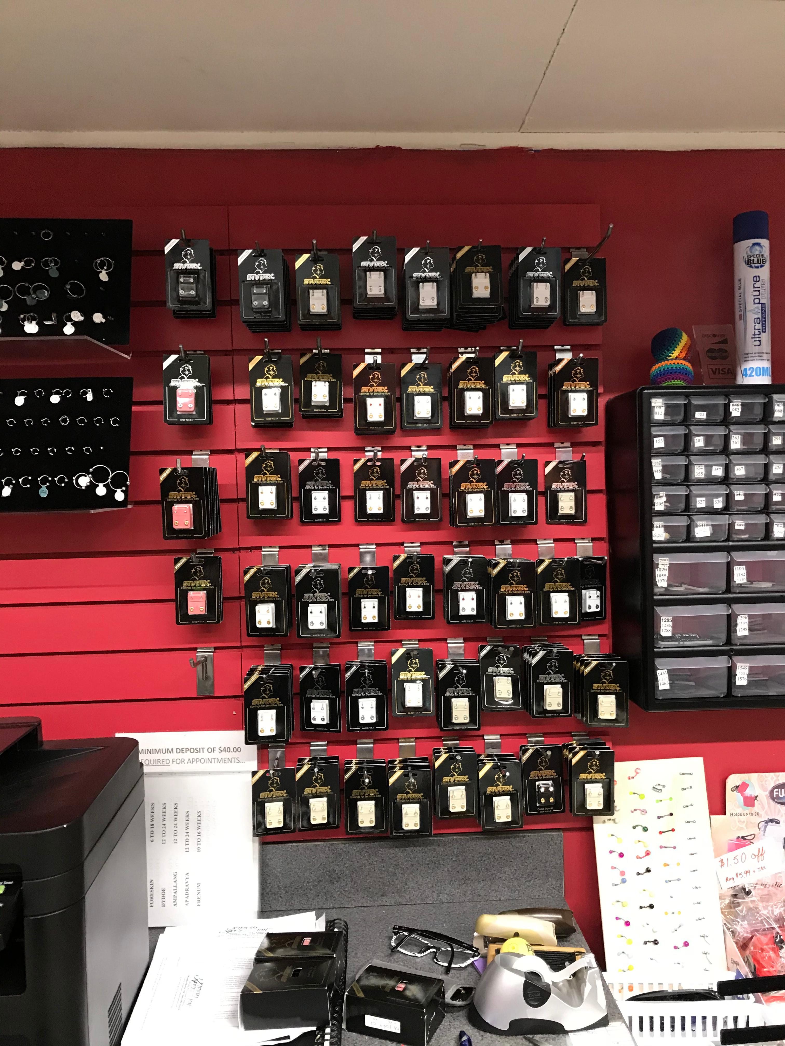 Shop is amazing!!! Got my ears pierced their 2 years ago and I was back today for a septum people are very caring and informative definitely going back their for any piercings or when im old enough tatoos!!