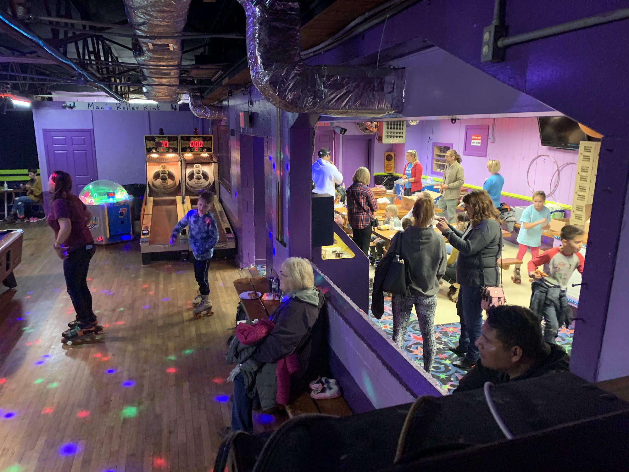 Macâs Roller Rink is a legendary destination where for generations people of all ages have gathered to skate, play, and have a blast. Come by and enjoy affordable family fun, where kids, teenagers, and adults alike can unwind, hang out, and build skating skills, rain or shine. Skate and, if youâre in the mood, dance to the music under our disco ball and black lights. Cash out your tickets from our arcade games for prizes, and fuel up with snacks and a drink. Whether youâre planning a party or just a fun Saturday night, youâre sure to have an experience youâll want to relive again and again.