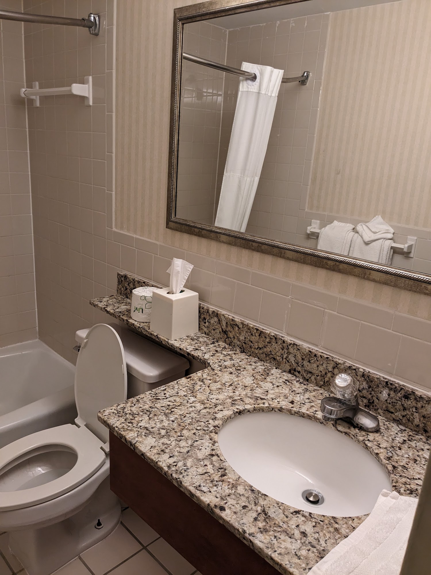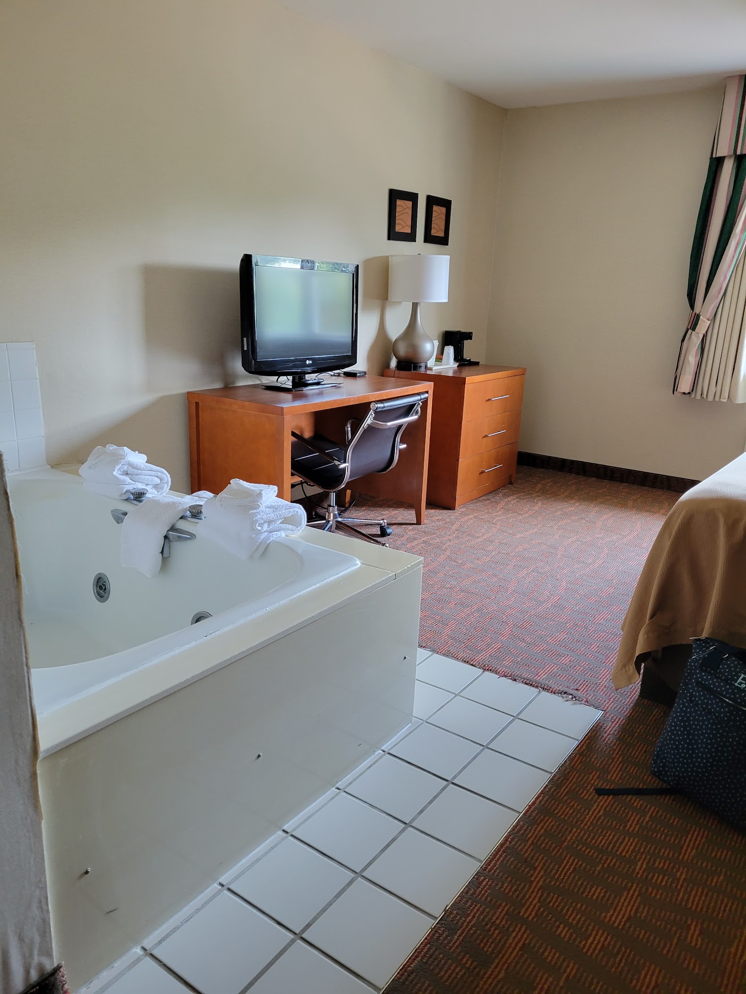 The room stinks. The room also doesn't have a fridge or microwave, luckily we brought a cooler. Nice location, right off 60.