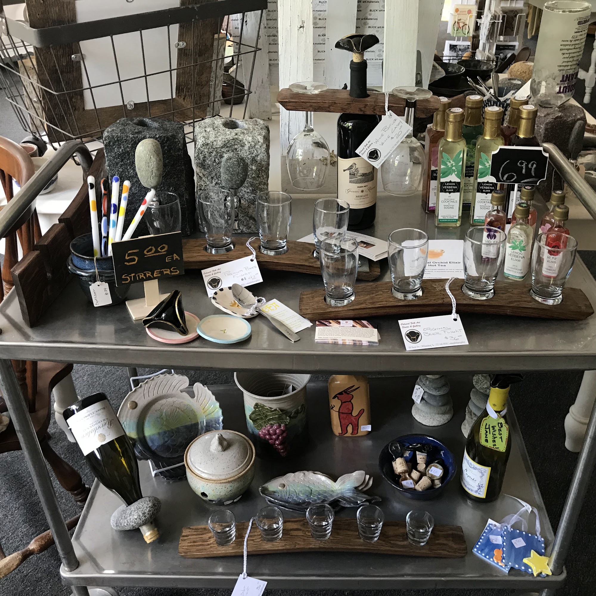 Cute shop with local art! Lots of variety for 'gift-able' items. A lot of the subject matter is local scenery AND almost all of the artists are local to Williamsburg. All of the ceramic things are even made right in house! It is truly a place to shop small and support local!