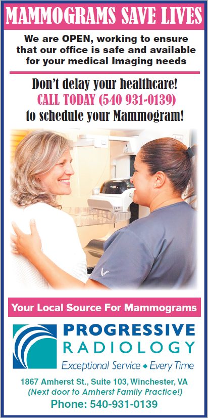 Nestled in the heart of the Shenandoah Valley, Progressive Radiology is conveniently located just off of Amherst St. across from the hospital in Winchester. Services include outpatient 3D Tomo Mammograph (Including SmartCurve positioning technology for greater comfort and less pain) Ultrasound and X-ray. Experience our spa-like mammography suite with the most advanced imaging equipment and caring, certified technologists that will guide you through your breast exam experience as never before. Personal dressing rooms, heated terri-cloth robes, friendly staff, professional technologists and specialized radiologists. Let Progressive Radiology transform your mammography experience!