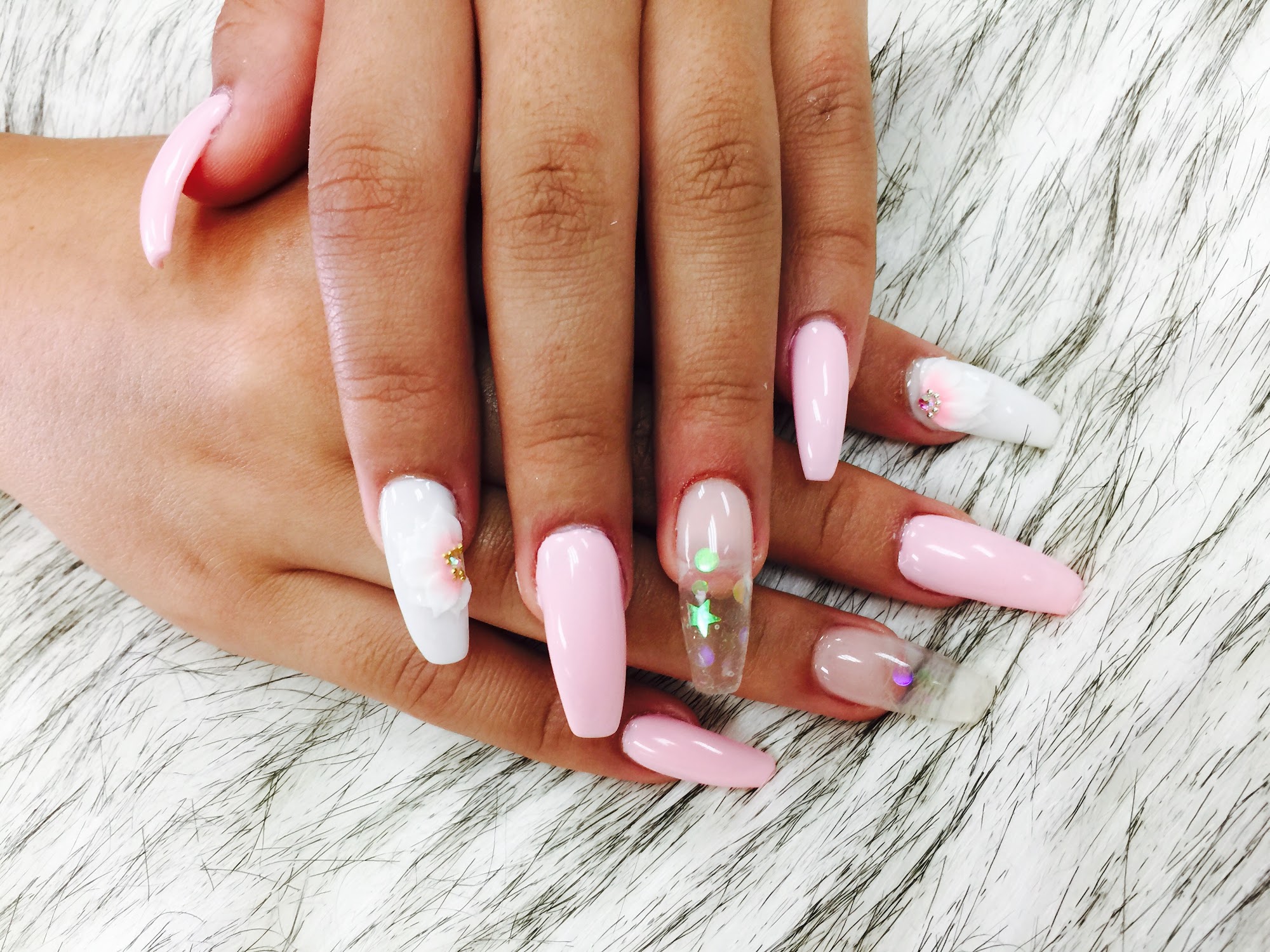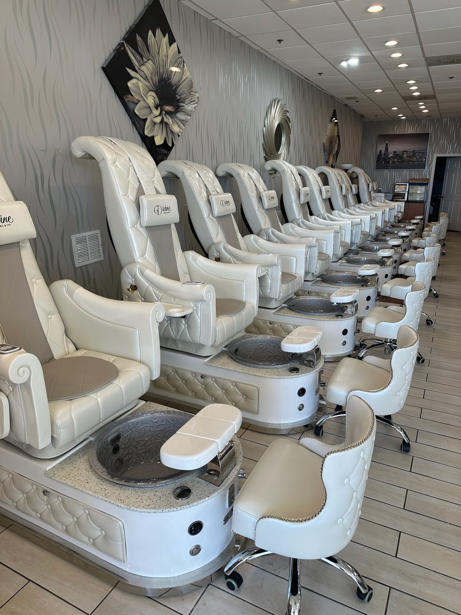 Divine Nails & Spa is a highly-rated nail salon in Woodbridge, known for its clean and aesthetically pleasing environment. The salon offers a variety of services, including spa pedicures, acrylic full sets with designs, and sculpted nails. Customers frequently praise the friendly and professional staff who are attentive to their needs. The atmosphere is described as cute and clean, contributing to a positive overall experience. Clients particularly recommend Nick for his skills and ability to ensure customer satisfaction. Nick is praised for his time efficiency, attention to detail, and for delivering exactly what clients request. Customers express their excitement about finding a new go-to salon and plan to return for more services. They describe the staff as highly skilled, professional, and detail-oriented, ensuring that their nails always turn out perfect. The salon is also commended for its cleanliness and for making customers feel comfortable and well-taken care of throughout their appointments.