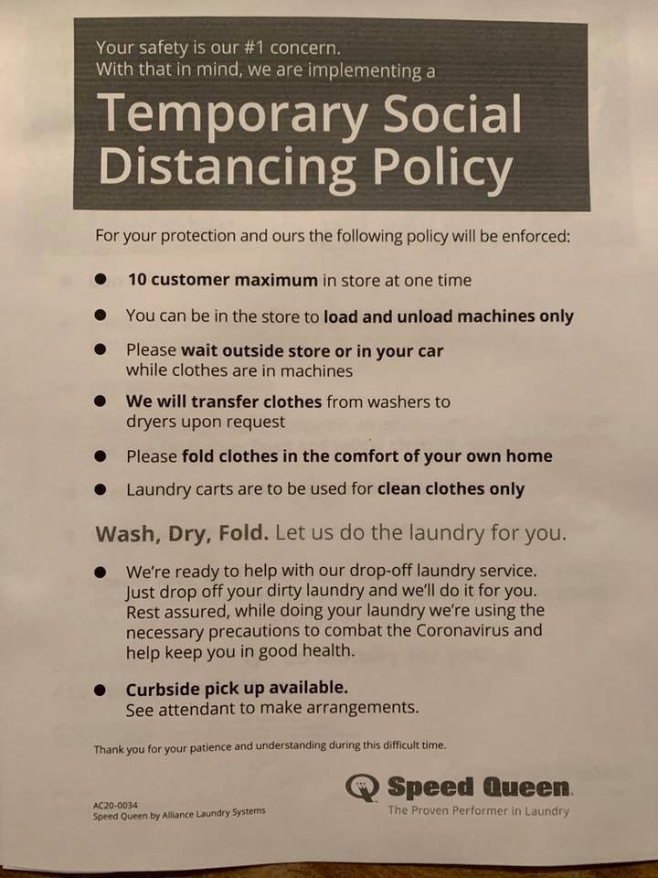 Quick. Get all your laundry done at once. Don't forget the secret code word to get 10% off. Look them up on Facebook to get it for the week.