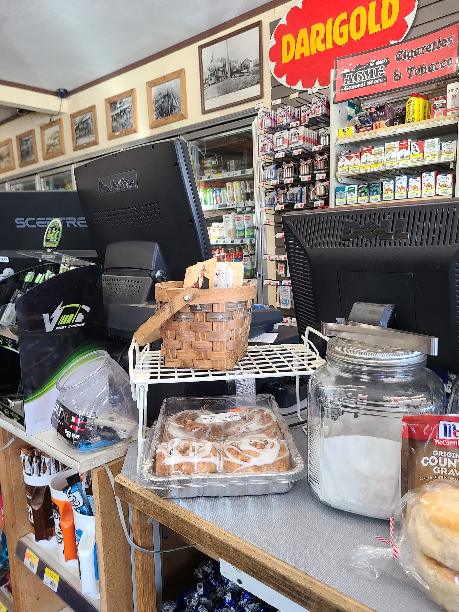 Acme General Store is a must-have, friendly, and welcoming little store for the small town of Acme, contributing greatly to the town's comfortable and special character. The nice building has charming character. It is a lovely place to stop, known for having the most amazing biscuits and an impressive selection of beers, including hard-to-find ones. The staff are generally described as super friendly, helpful, and welcoming. A resident dog adds to the charm. The store is also noted as a helpful stop for travelers, providing needed items and restroom access. However, a significant negative experience was reported with "The bowl maker" coffee mugs sold there. A customer found these beautiful mugs to be very cheaply made, cracking after normal use within months. The initial response from a manager to the complaint was unsatisfactory, suggesting customer fault. The situation was later rectified after the message was passed to the artist, who stands by her product. Potential buyers should be aware before purchasing these mugs for hot liquids.