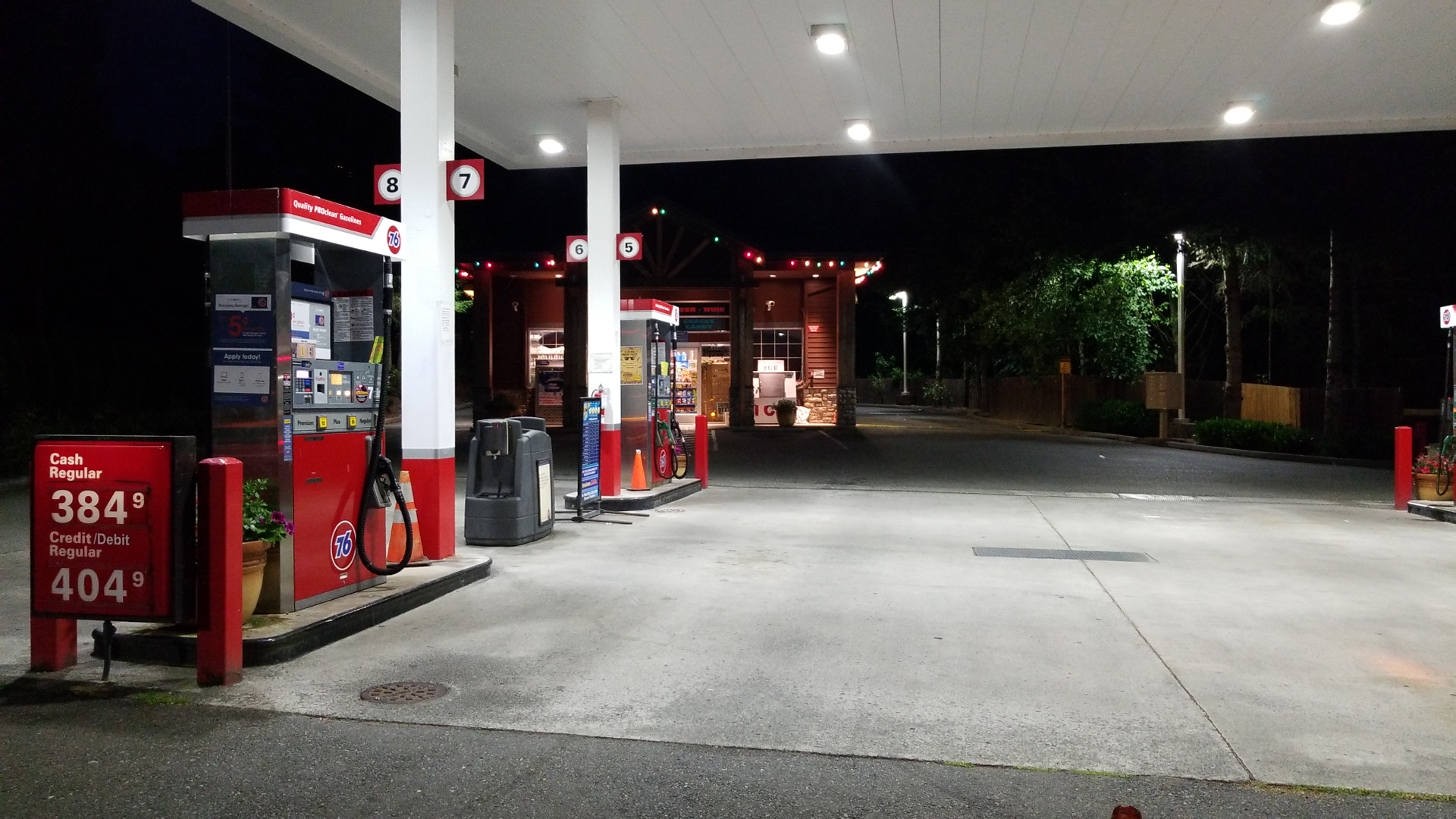 Noticeably expensive gas, but the only available within 4-5 miles. Nice choice of basic snacks and drinks inside