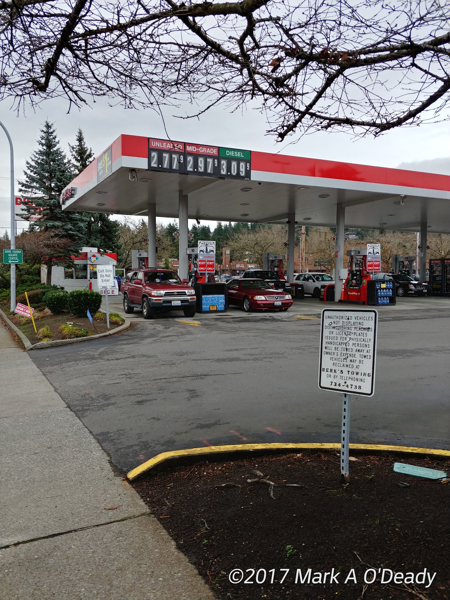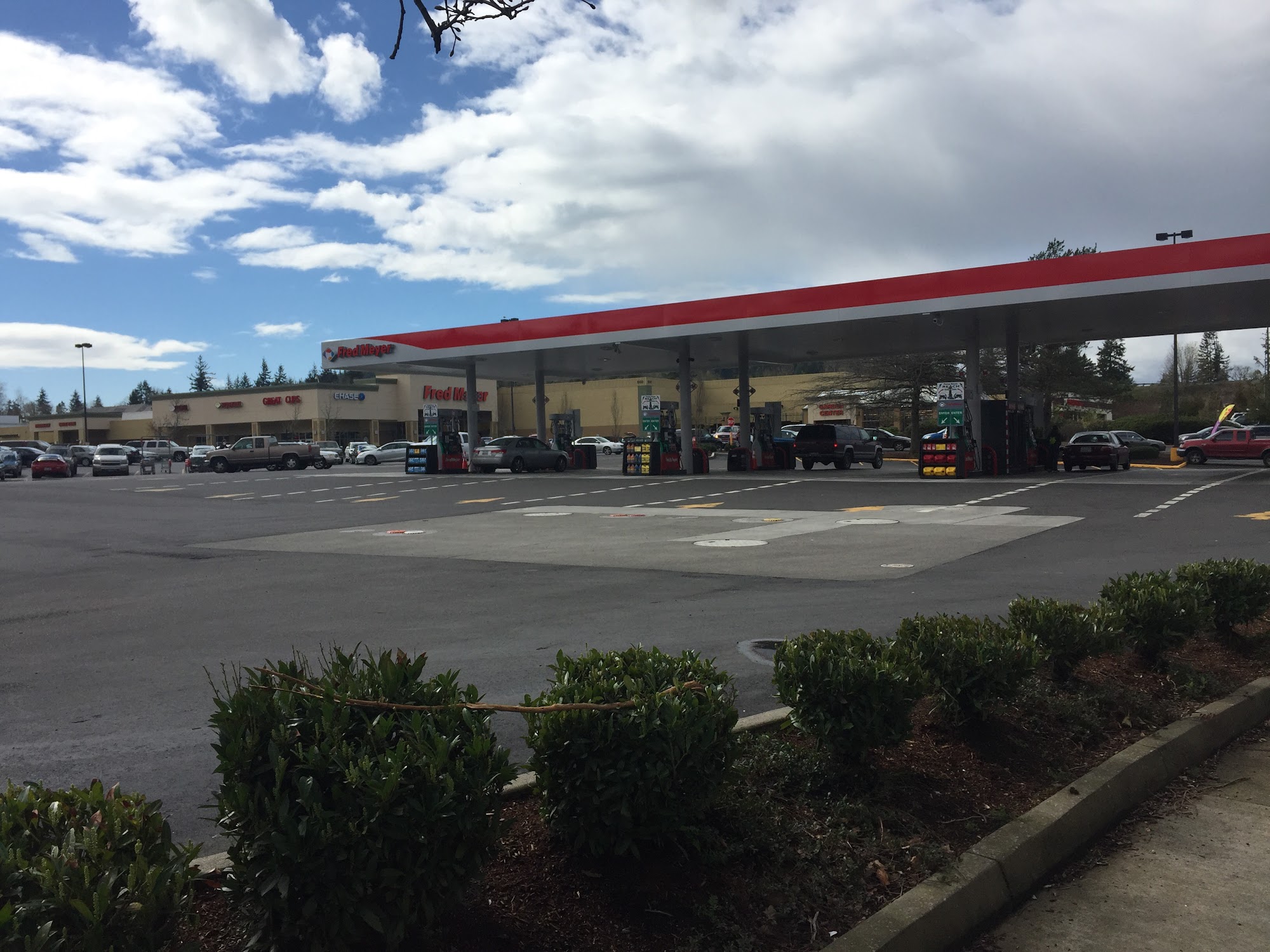 Fred Meyer Fuel Center offers good prices and good gas quality. It is a clean facility with equipment in great maintenance. There are plenty of pumps, so there is never a wait in line mostly. The pumps have long enough hoses to reach either side of any vehicle. Using the Fred Meyer reward card gives a nice discount, from at least 3ยข off a gallon up to $1 off. The pay attendant station can be kinda far from the pump depending on which one you use. Some pumps need to be cleaned, but this is where you go for gas.