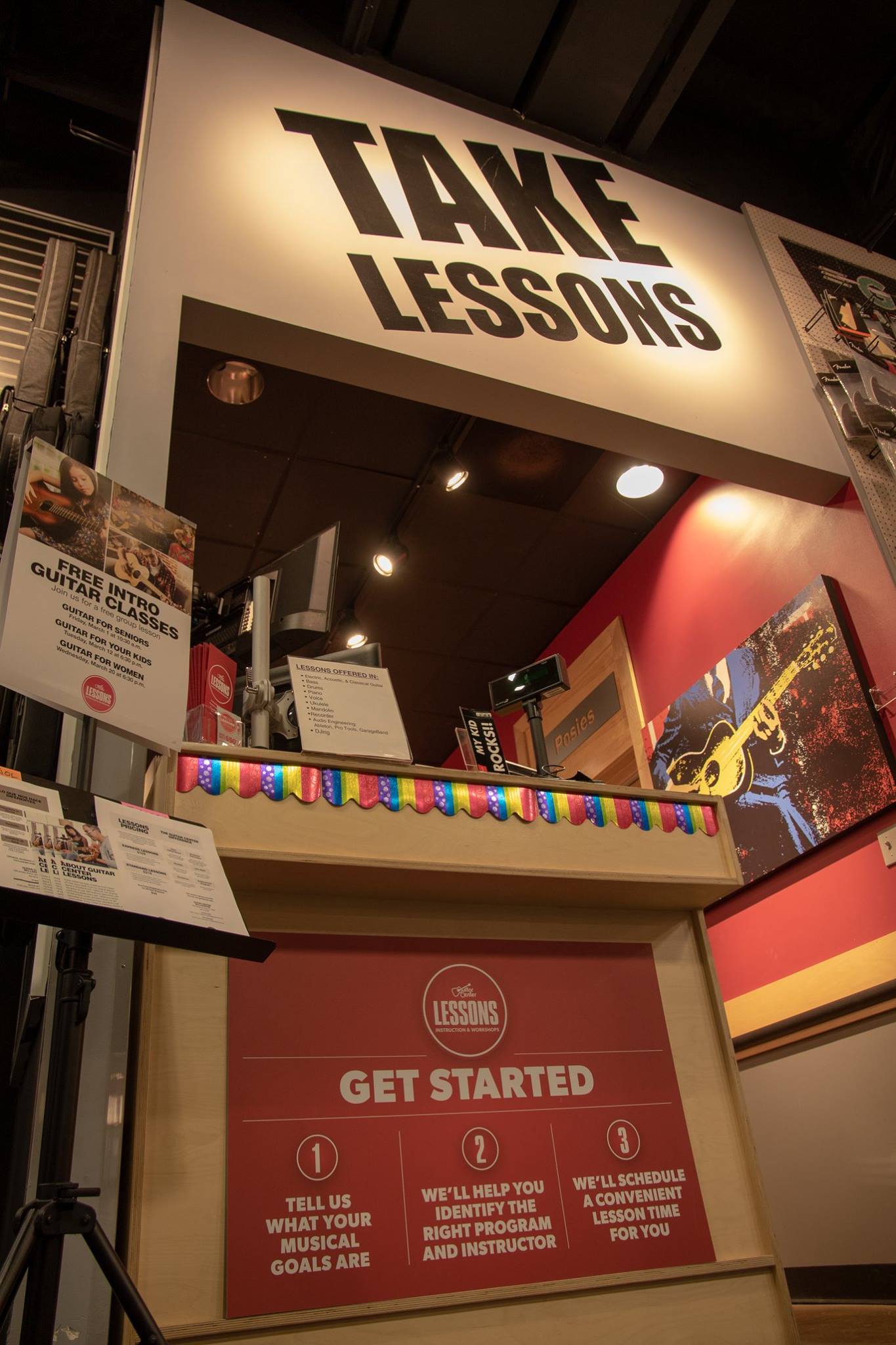 Guitar Center Lessons is appreciated for its helpful and friendly staff who are not pushy, creating a relaxed atmosphere where customers can test gear. The store offers an amazing display of electric, acoustic, and bass guitars. However, the selection of amplifiers, pedals, and keyboards is often described as limited, slim, or lacking unique and interesting brands. The in-house guitar repair service is also praised for doing great work. Many customers keep coming back for purchases and services.