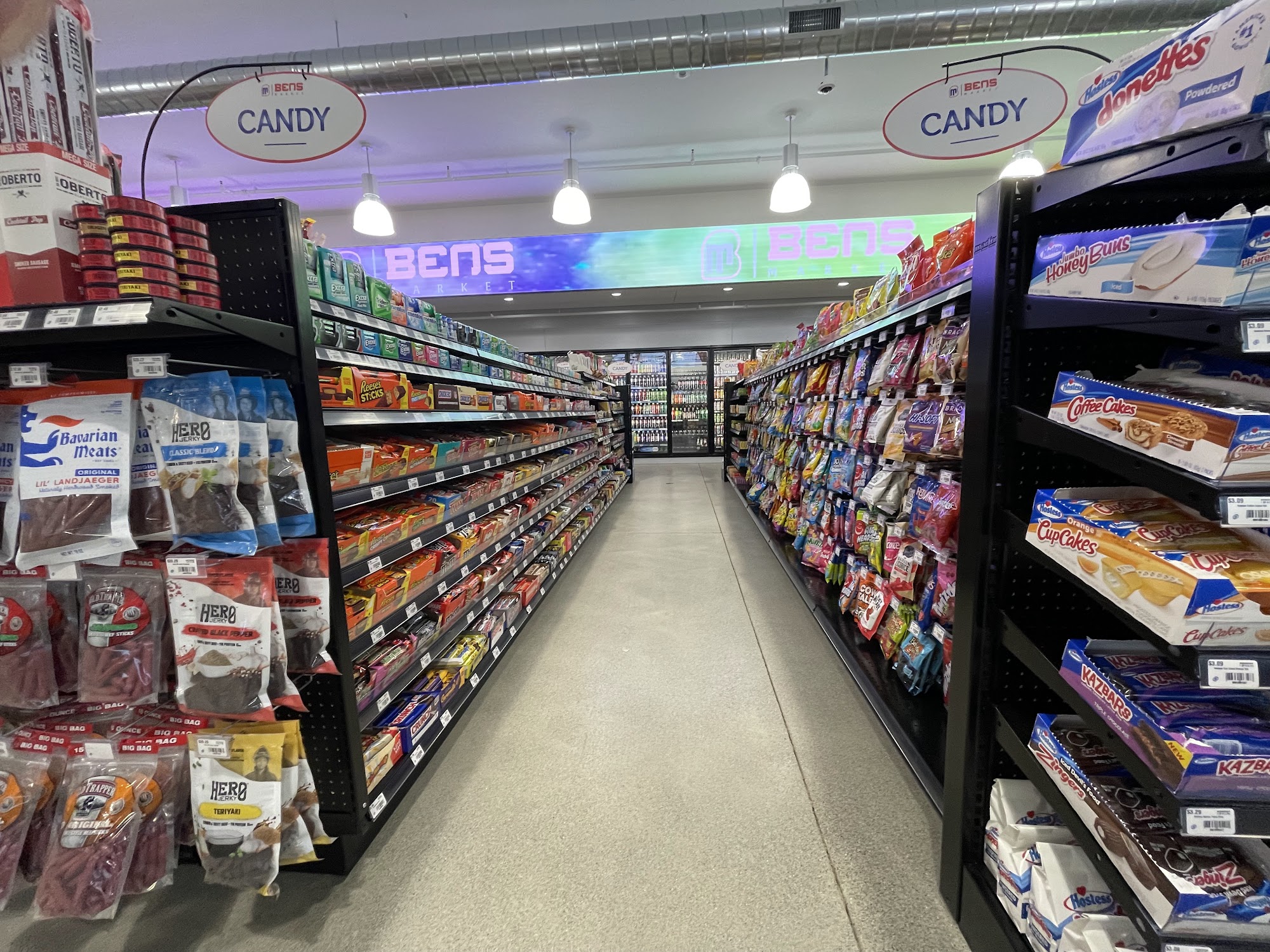 Bens Market #2 is a fairly new, clean, and spacious stop. It has just about everything, including a great variety of foods, an impressive selection of coffee options, and diverse amenities like a Carl's Jr., Pizza Hut, Cinnabon, and Jamba Juice. The location is super convenient and it is never busy. It offers ethanol free gas, 12 fuel pumps, and 16 Tesla Super Chargers. The restrooms and showers are very clean and spacious. The staff is friendly, helpful, and great, with most working hard to stock, clean, and help the customer. It is a great place to stop that exceeds expectations.