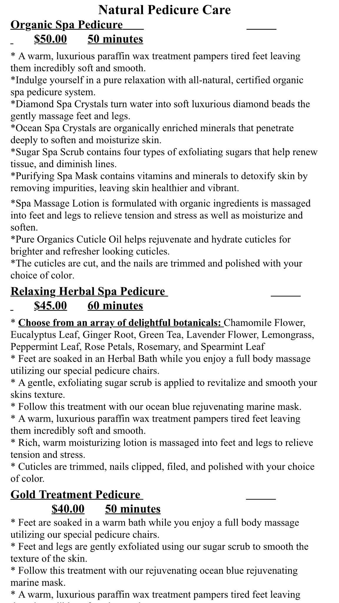 The team is wonderful to me and my elderly mother. They do good work and are friendly. I have had both regular and shellac manicure/pedicures. They have a large color selection.