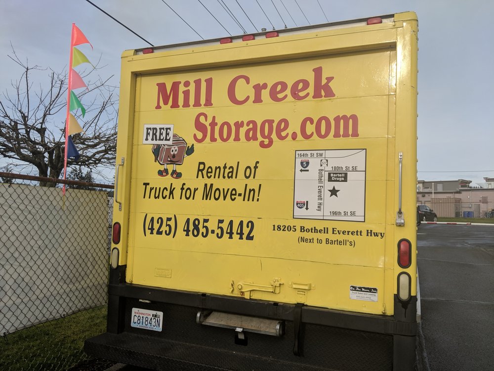 We’re the solution to your storage needs in Mill Creek! We offer many sizes of bright and clean drive-up & inside units. Our goal is to provide you with exceptional service and a pleasant, secure storage environment. Enjoy FREE U-Haul truck use (with a rental of 5x10 or larger), a FREE high-security lock, and a FREE gift just for touring. Rent and pay online and earn $50 for every referral! Amenities include 24/7 video surveillance, gated access, unique entry codes, long access hours, covered and uncovered RV/boat/vehicle parking, and discounted moving supplies. We offer the best self-storage in Mill Creek at great rates. Call or stop by today to give us a chance to earn your business. Storage you can trust, your stuff will love it here!