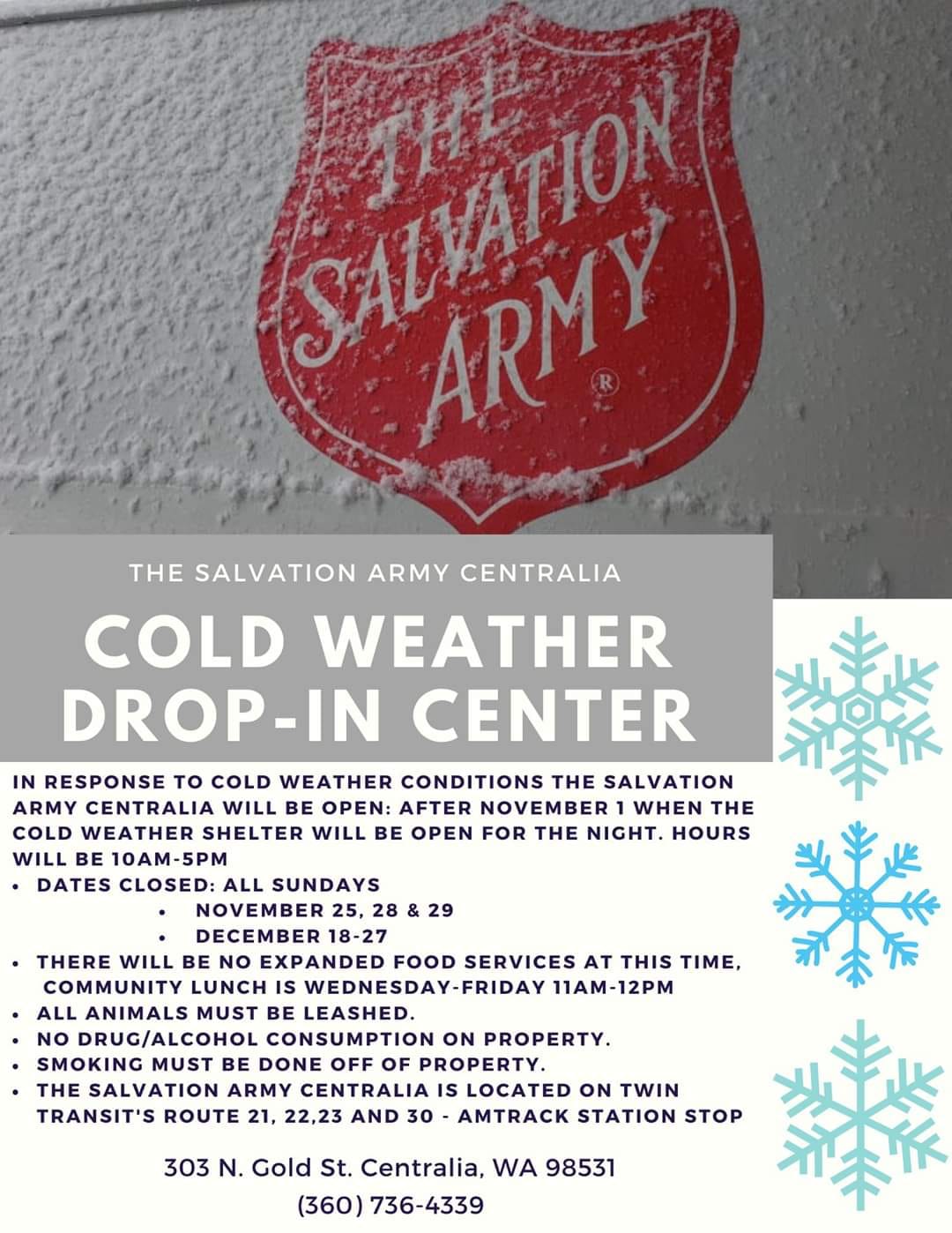 Awesome employees, go there daily except for on the weekends. I can shower there, get food there, get clothes there, love this place this is my home...