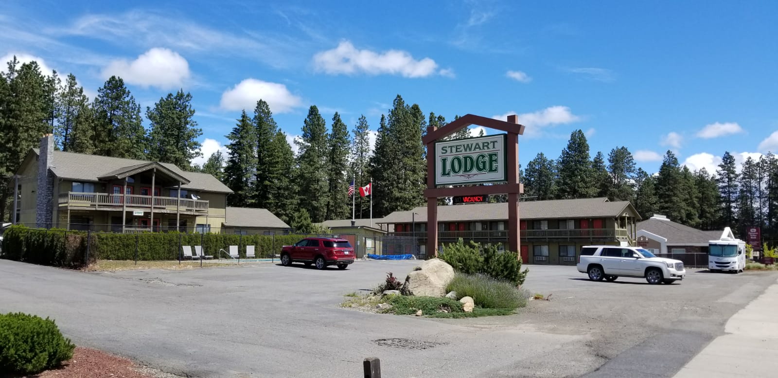 Stewart Lodge is a convenient and budget-friendly hotel located at the entrance to Cle Elum. It is especially pet-friendly, making it a great choice for travelers with dogs. The lodge features clean rooms that are spacious and equipped with amenities like a microwave, mini fridge, and a good-sized TV with numerous channels. While the air conditioning works well, it can be noisy when it kicks on and off. Guests have noted that the beds are firm but may not be ideal for those sensitive to movement. The bathrooms come with two sinks, but some features, like the showerhead height and toilet flush buttons, may not be ideal for everyone. Noise from nearby doors can be disruptive, although other sounds from adjacent rooms are minimal. The continental breakfast offers a decent selection, including cereal, eggs, and make-your-own waffles, though the quality can vary. Despite being an older property, Stewart Lodge is praised for its cleanliness, good location, and value, making it a suitable stop for those traveling across the state. With easy access to nearby restaurants and a Safeway across the street, it offers a practical and comfortable stay for guests looking for a simple overnight experience.
