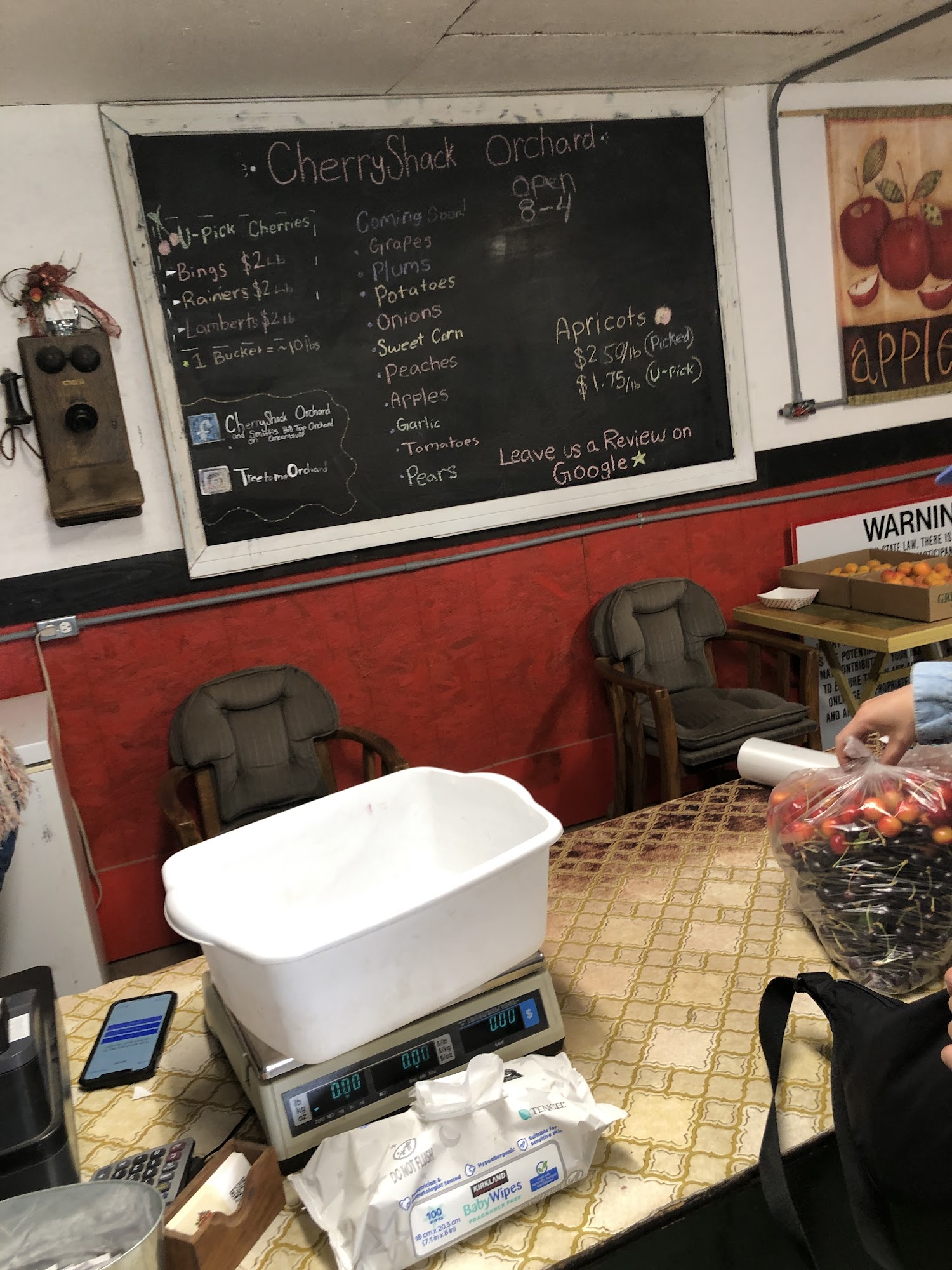 Cherry Shack Orchard on Green Bluff offers a large variety of fresh fruit and vegetables. We have been serving Spokane with delicious and healthy fruit at great prices since 2008. We grow all of our produce and it reflects in our great tasting and good priced fruit and vegetables. Family owned and operated along with our other orchard Smith's Hilltop Orchard. We have multiple varieties of cherries, apricots, peaches, pears, apples, tomatoes, potatoes, peppers, onions and garlic. The one stop shop for all your produce needs!