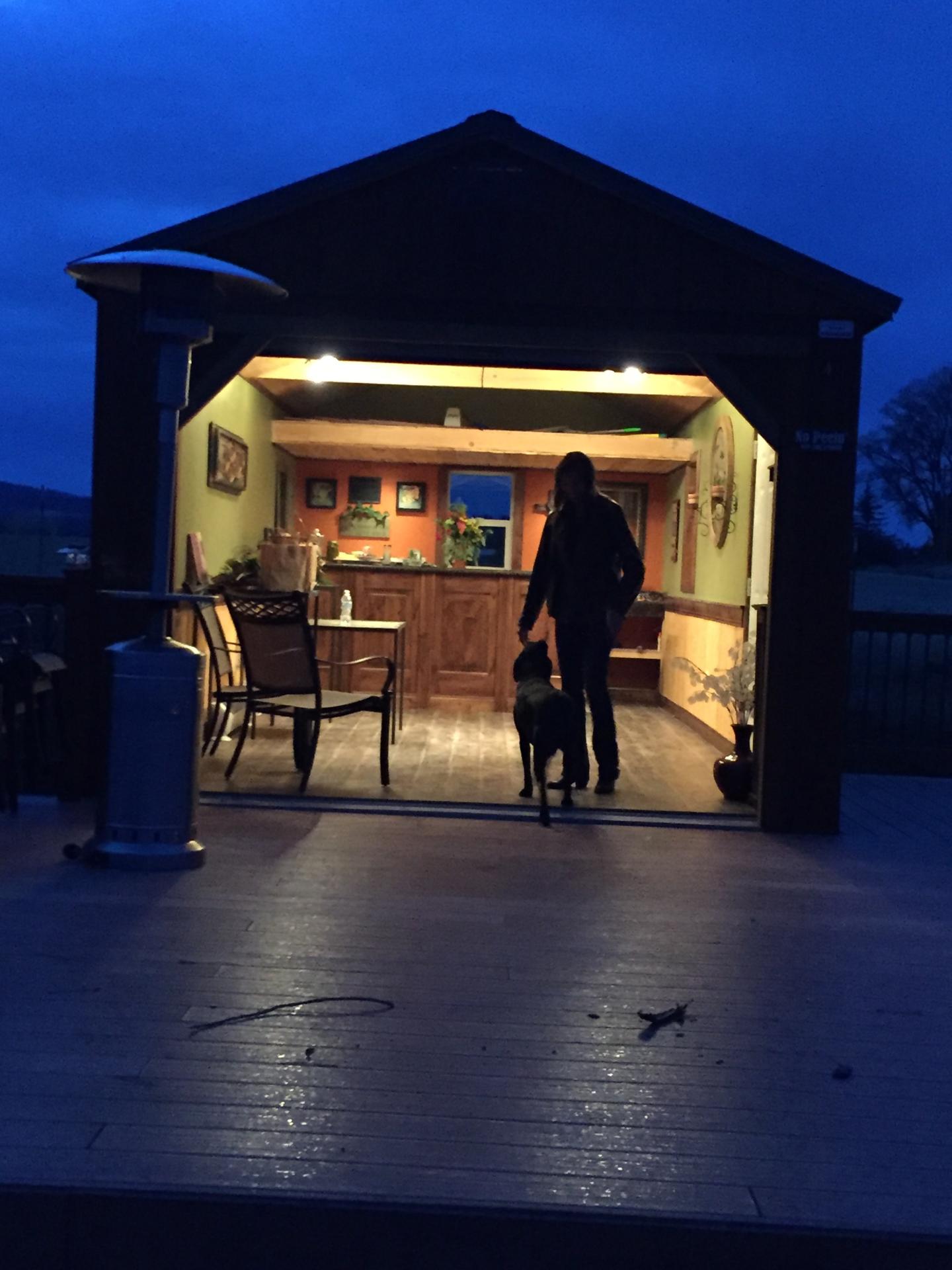 We will open the tasting room back up in the spring and will be open every Saturday from 2 to 6 to the end of October - cheers Shannon. You can pre-order wine and pick up just call me with your order 509-710-8393. I will package it up, you pull up and I will bring it out to you even :) Cheers Shannon