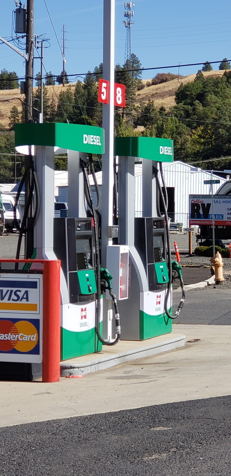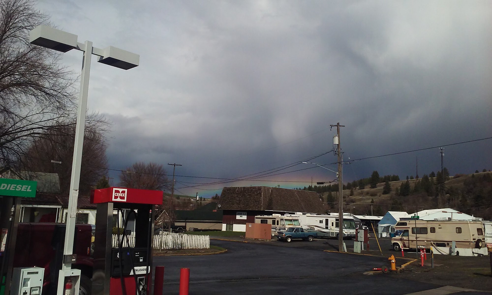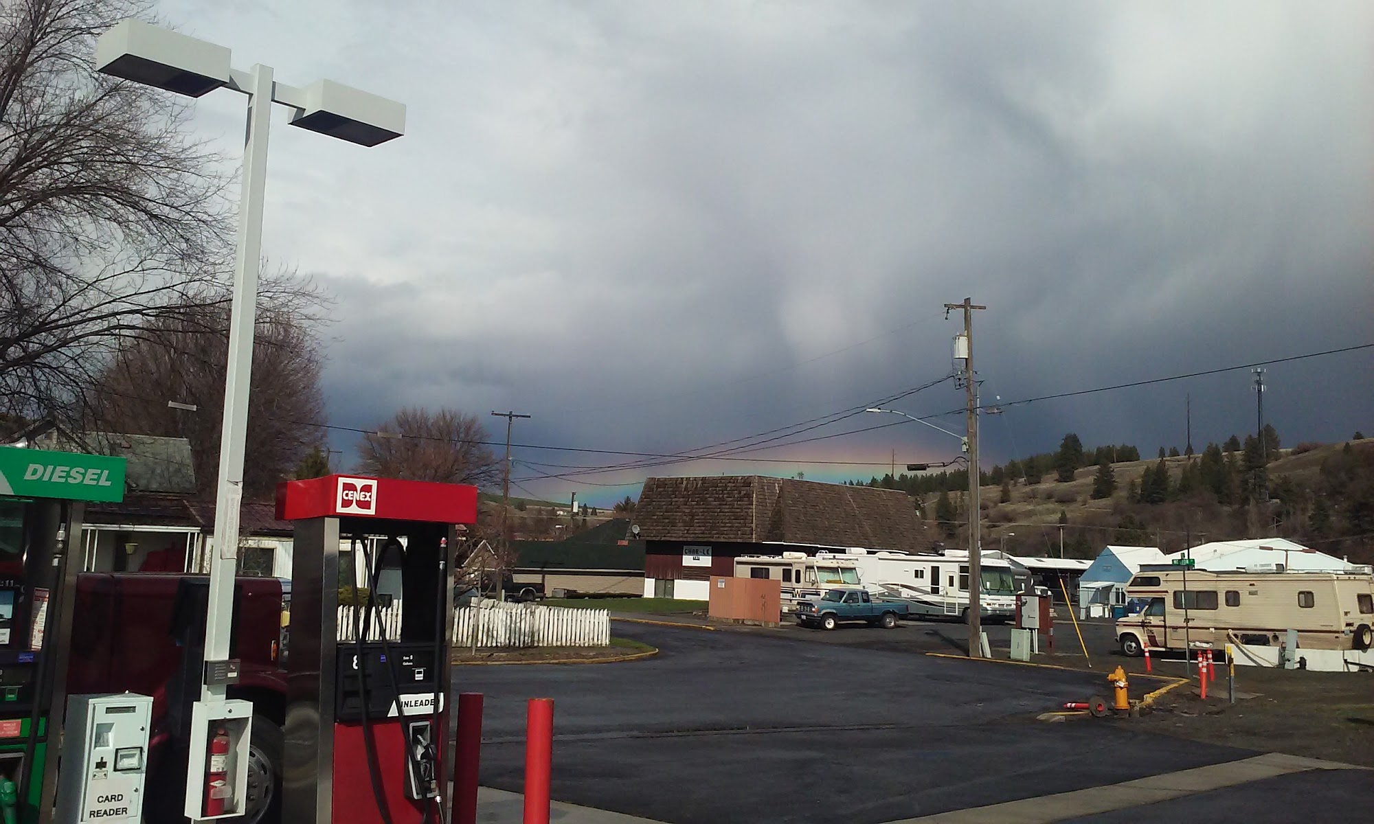 This little Cenex is part of Four Star Supply and offers 3 fueling station. One is for larger rigs. It is clean and well kept grounds. No attendant unless during business hours at Four Star.
