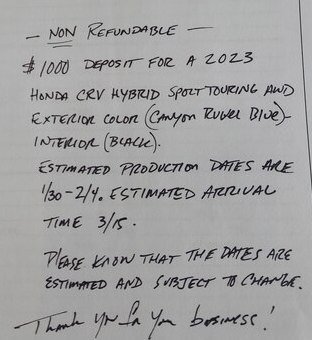 Jules and Anuj were informative, professional and friendly through the process of our new car purchase. This is after a terrible, shady experience at Marysville Honda. They are fair, honest people. We saved $17K on the same car! I've never had an experience like I did today at a car dealership. Thank you Jules and Anuj!