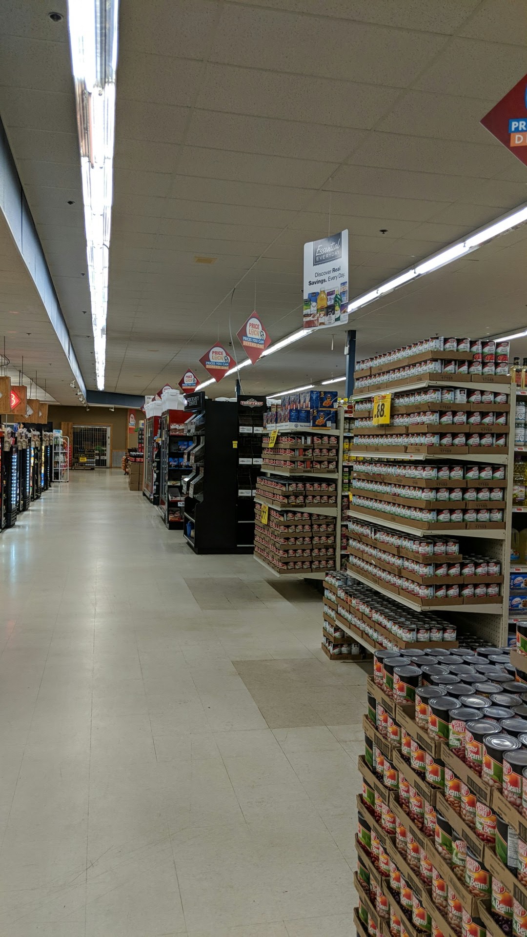 Typical small town store. Unfortunately these smaller companies have to charge more to be able to stay in business and compete with companies like Kroger causing a markup in crisis that makes convenience stores about as cheap to shop at. Large selection of products though for a small town store.