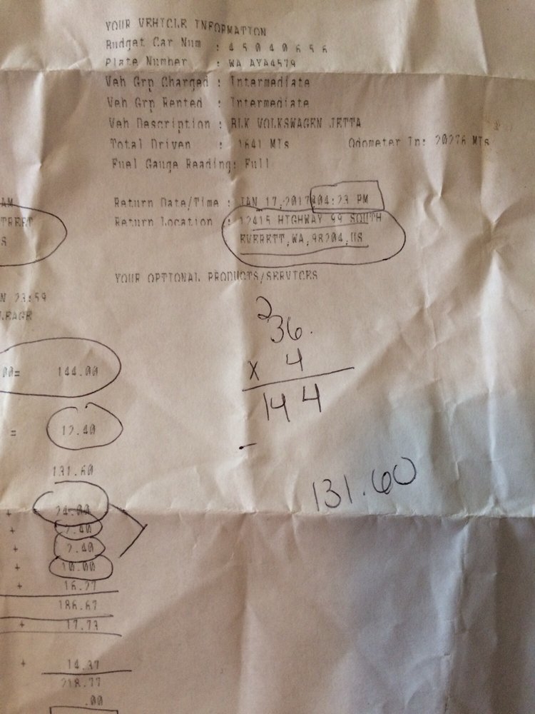 I was thoroughly displeased with Budget Rental Car of Paine Field/Lynnwood.There is a clear pattern of problems at this Budget location, and I regret not heeding the warnings from other customers in their reviews. However eventually I was made whole by someone of upper management.