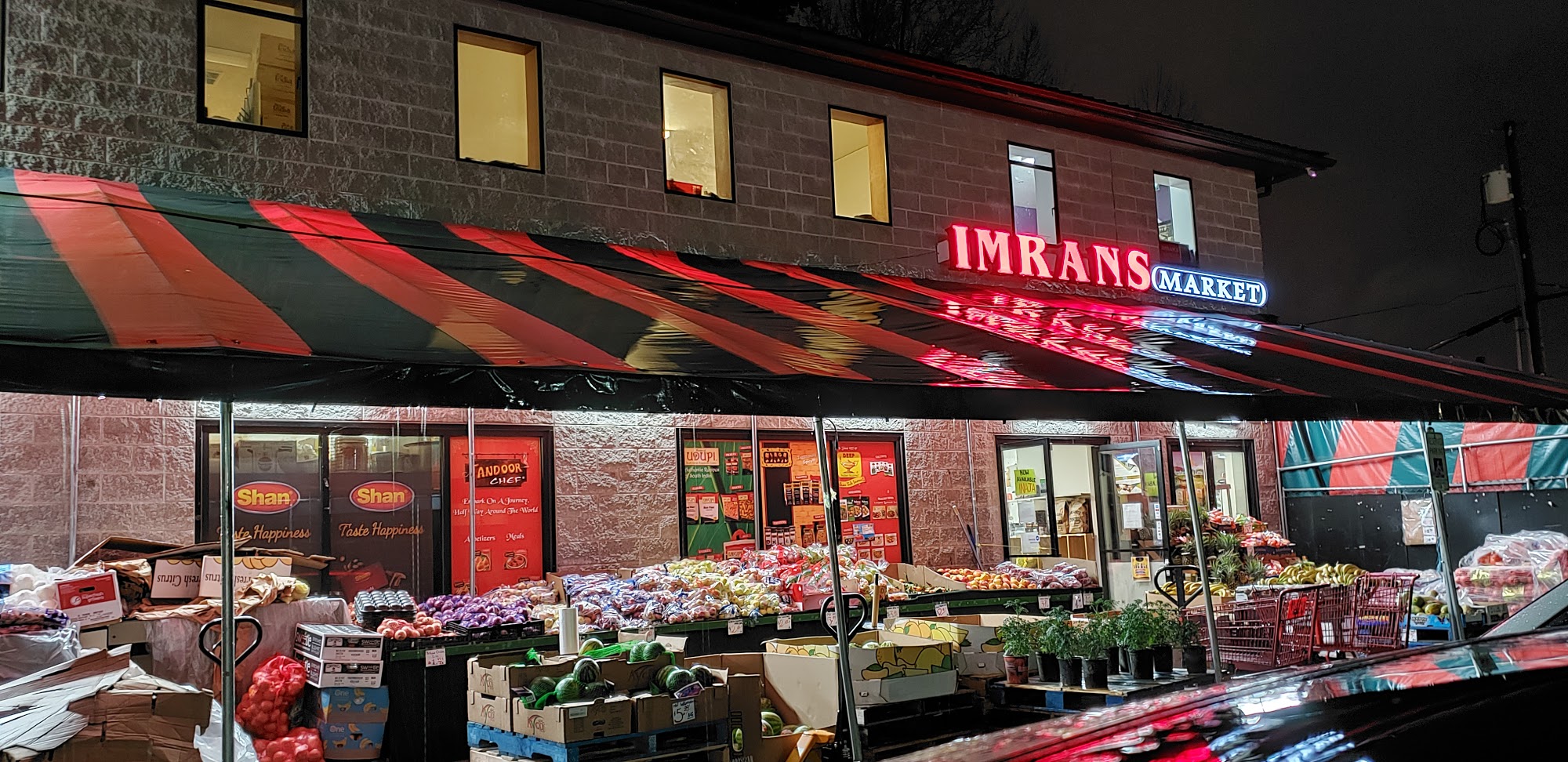 Imrans Market is a local grocery store with an excellent selection of fresh fruits and vegetables at a good price point, available for a longer season. It also offers pantry foods, lamb meat, cheese, bread, spices, and Indian groceries. The store is great for these items, though its Indian groceries are significantly marked up compared to nearby stores. Finding price labels on shelves can be impossible. Customers highly recommend it despite its location, which some wish was different.