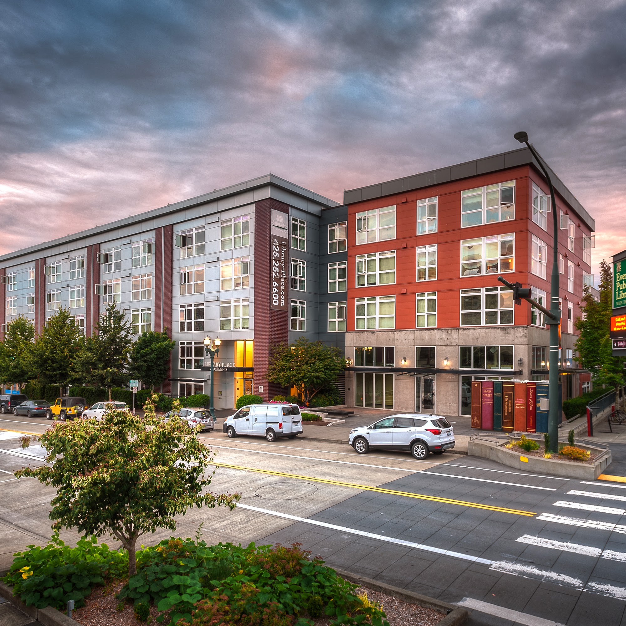 Library Place offers luxury living with urban convenience in the heart of Everett, near the waterfront. The apartment homes feature expansive windows with breathtaking water or mountain views, stainless steel appliances, elegant finishes, and spacious layouts. Residents enjoy amenities like an outdoor courtyard with a fireplace, the Ogden Reading Room, secure access, an Amazon locker, and a parking garage. It is a pet-friendly building with dog treats and bags provided. The location is close to everything, including theaters, the Snohomish River for kayaking, and eclectic boutiques. The building is well-kept, clean, surprisingly quiet, and secure. The staff and management are described as well-organized, welcoming, efficient, knowledgeable, personable, professional, dynamic, great, and amazing. They work with residents and try to make them feel at home. Reviews note the friendly people, convenient trash service, and the overall pleasure of living there, with many planning to stay long-term.