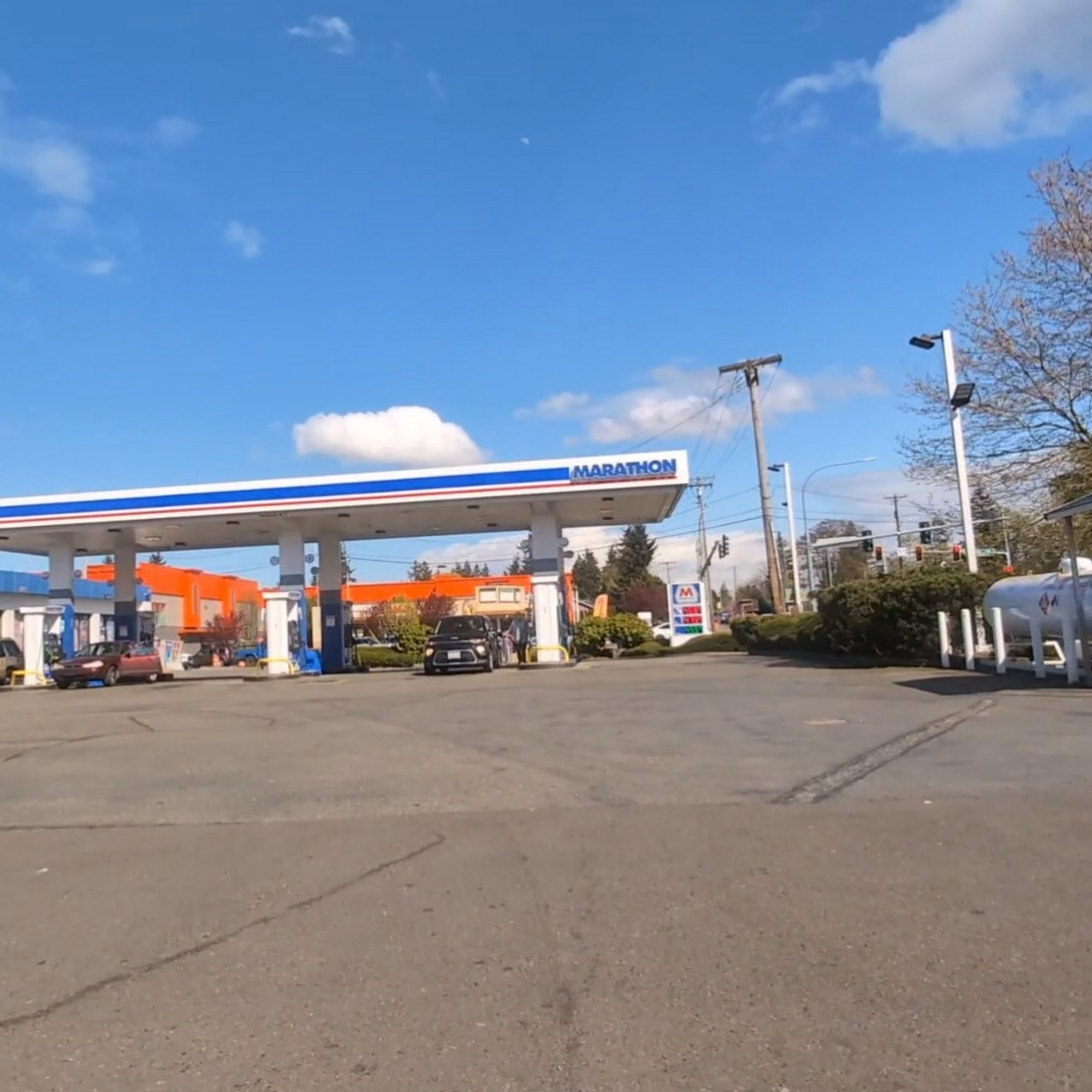 Northshore Marathon good gasoline prices, gas at $4.49 a gallon, good compared to other stations. It is easy to get in and out, and you can pay at the pump with a credit/debit card using contact less paying features. The membership-based car wash next door is convenient because you can fill up the tank and wash your car. Machines DON'T print out receipts, but it is okay and easy to use.