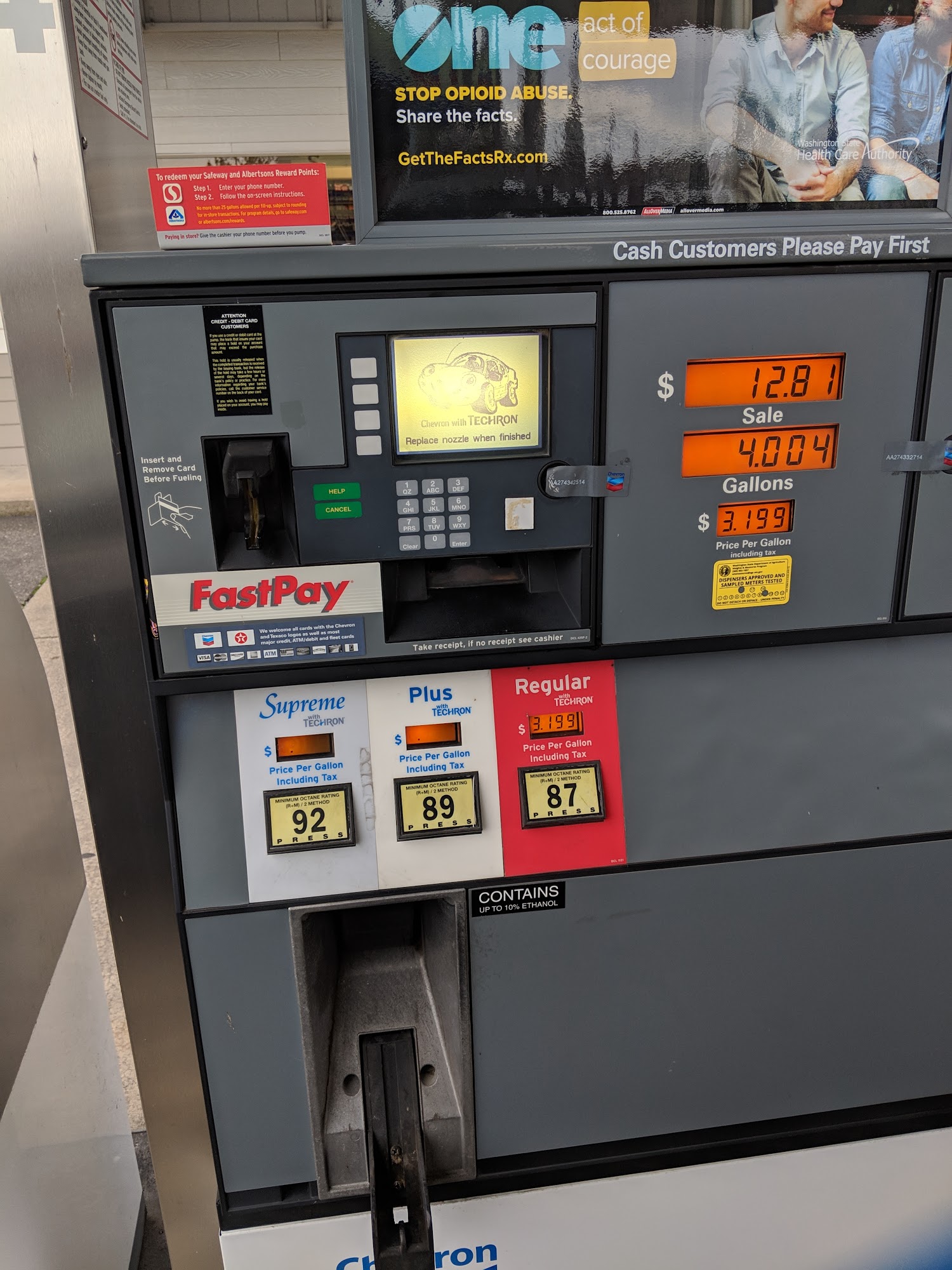 Just off the highway and generally cheaper than gas stations closer to the border. Ferndale is usually cheaper though.