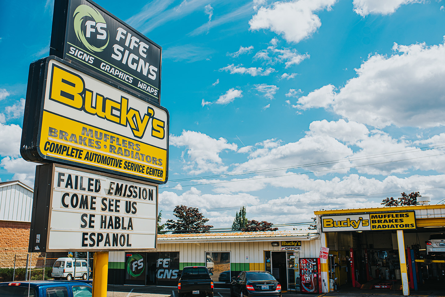Bucky's Complete Auto Repair in Fife is a trusted, family-owned business with sixteen locations across Puget Sound, including Tacoma, Bremerton, Everett, and Federal Way. They specialize in custom exhaust systems, brakes, and cooling system repairs, but are equipped to handle all auto maintenance and repairs for all makes and models, including trucks and RVs. Customers appreciate their fast, friendly, and honest service, often praised for prioritizing urgent repairs and providing same-day service without appointments. The team is known for their professionalism and willingness to help, even accommodating customers with unusual working hours by leaving keys at motels or fitting in urgent repairs. Many customers have relied on Bucky's for years, with reviews highlighting their quick turnaround and quality workmanship. They have fixed issues like brake assist notifications, seat belt buckles, and belt problems efficiently, enabling customers to get back on the road promptly. The staff is highly recommended for their friendly attitude and top-quality service, making Bucky's a go-to choice for car care needs. Whether changing plates or repairing critical parts, Bucky's consistently delivers reliable, professional, and courteous automotive service to the community.