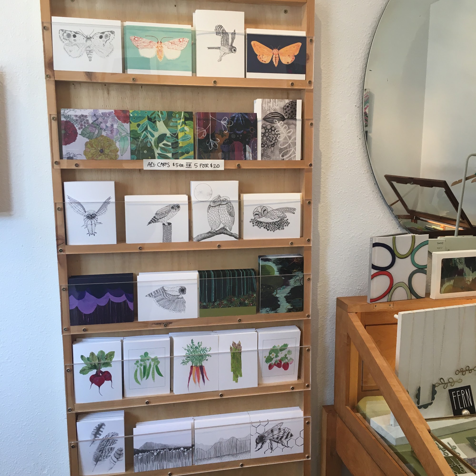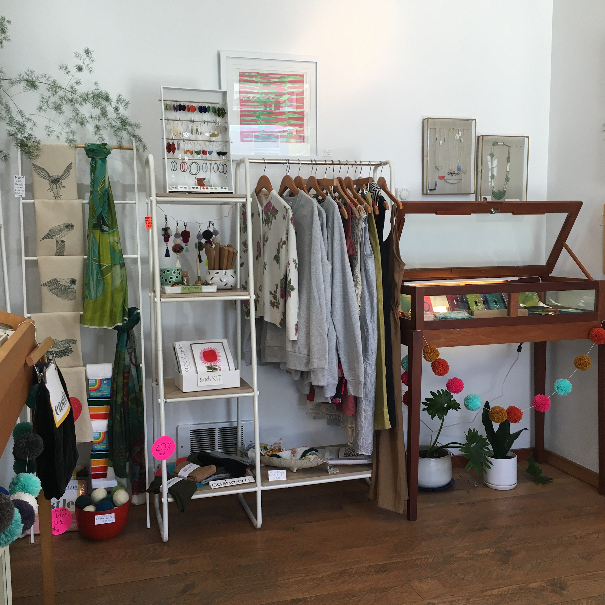 What a lovely little place! The artist is very talented and runs the store herself. Beautiful art printed and on scarves. I purchased a necklace that I have already had compliments when wearing this week.