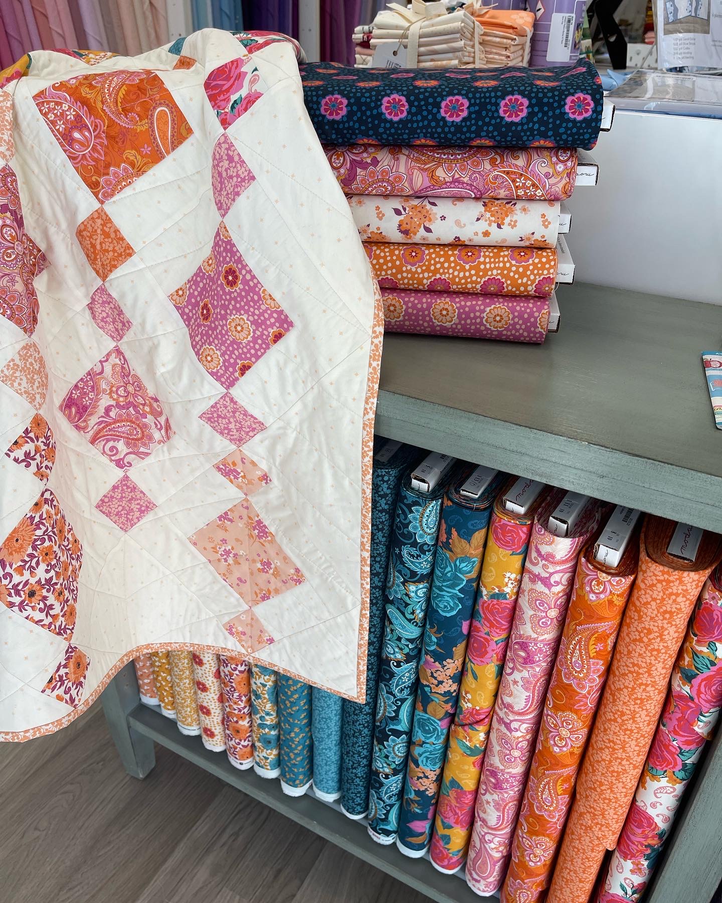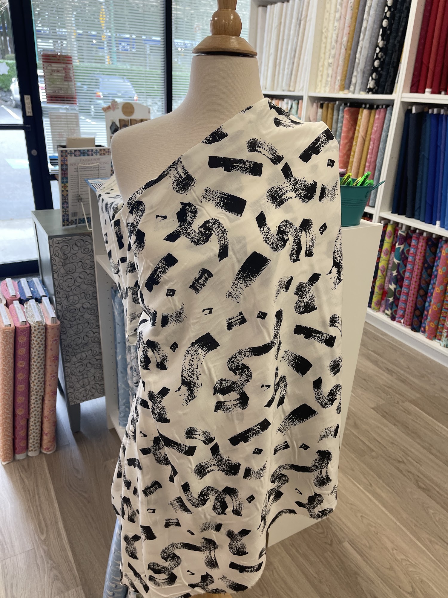 Small shop packed with amazing fabrics and notions. The owners are very helpful and really fun people. Just off the highway. Go…..