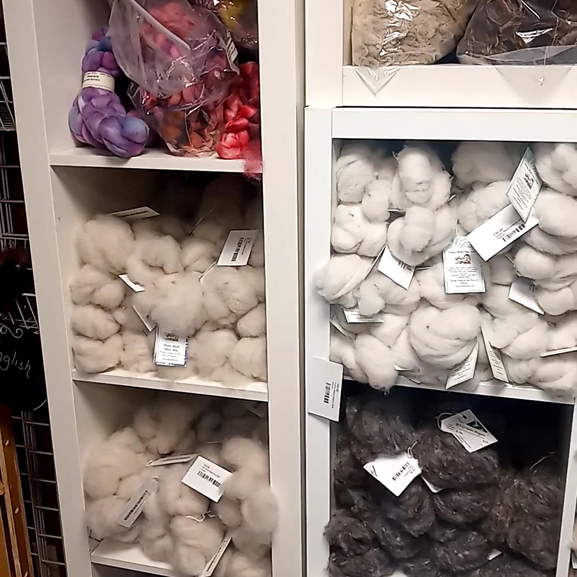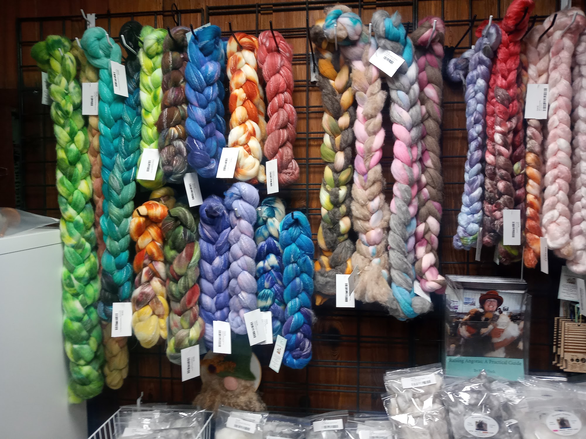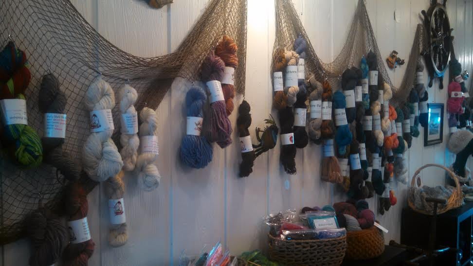 Firstly, the yarn shop does NOT smell of dogs! It smells like wool and dye if they happen to be dying that day. It's a very minimal scent and not chemical smelly. The yarn is absolutely beatififul, vibrant colors. Spinning yarn isn't a big industry that I know of. Just go see for yourself. These are pieces of art!