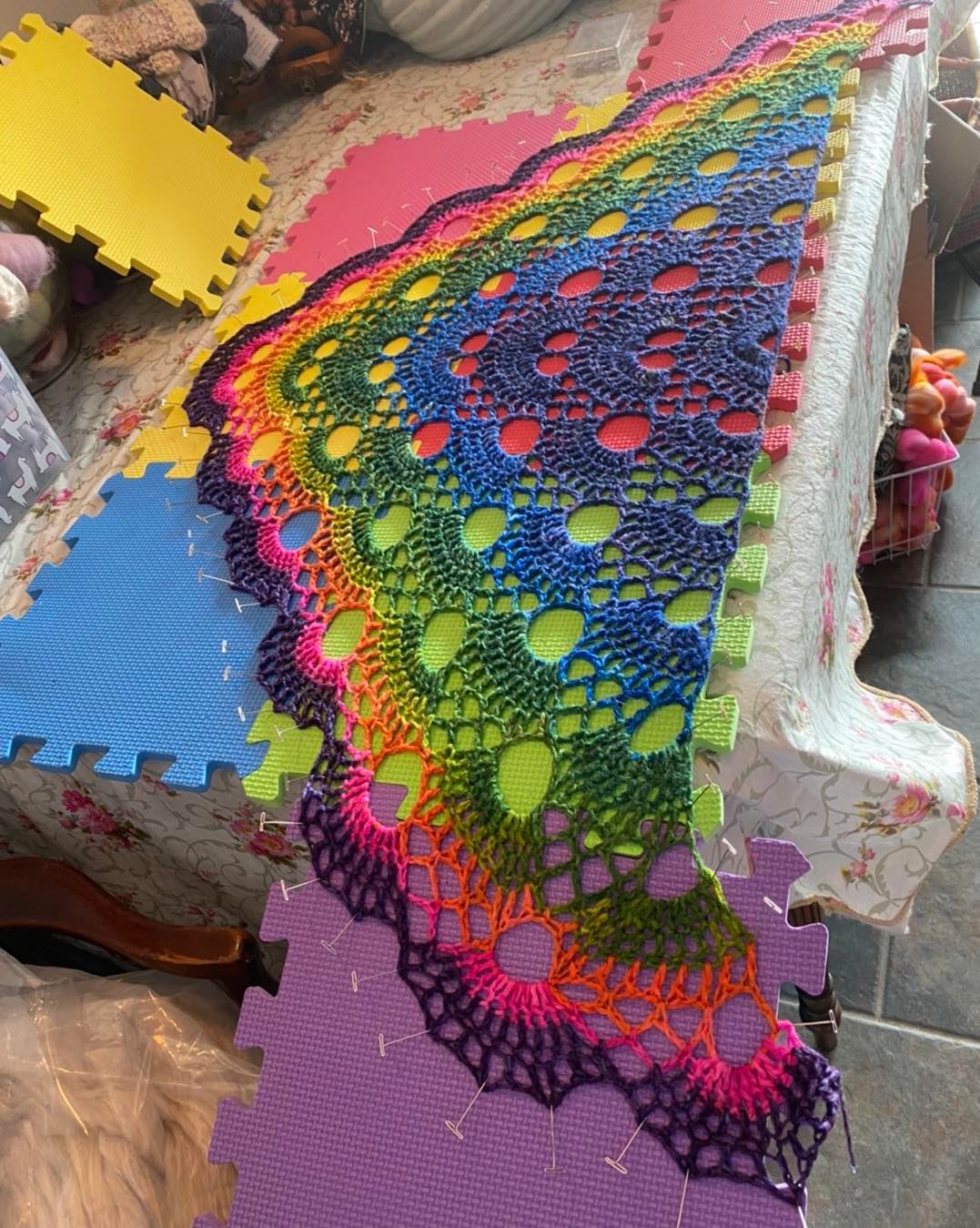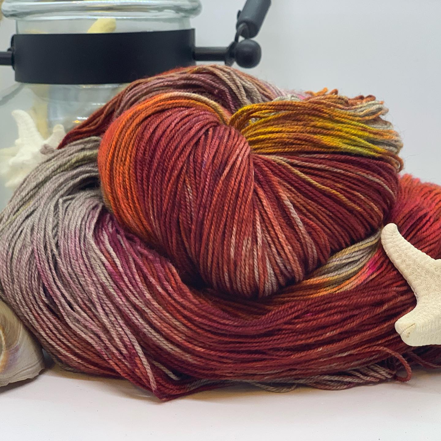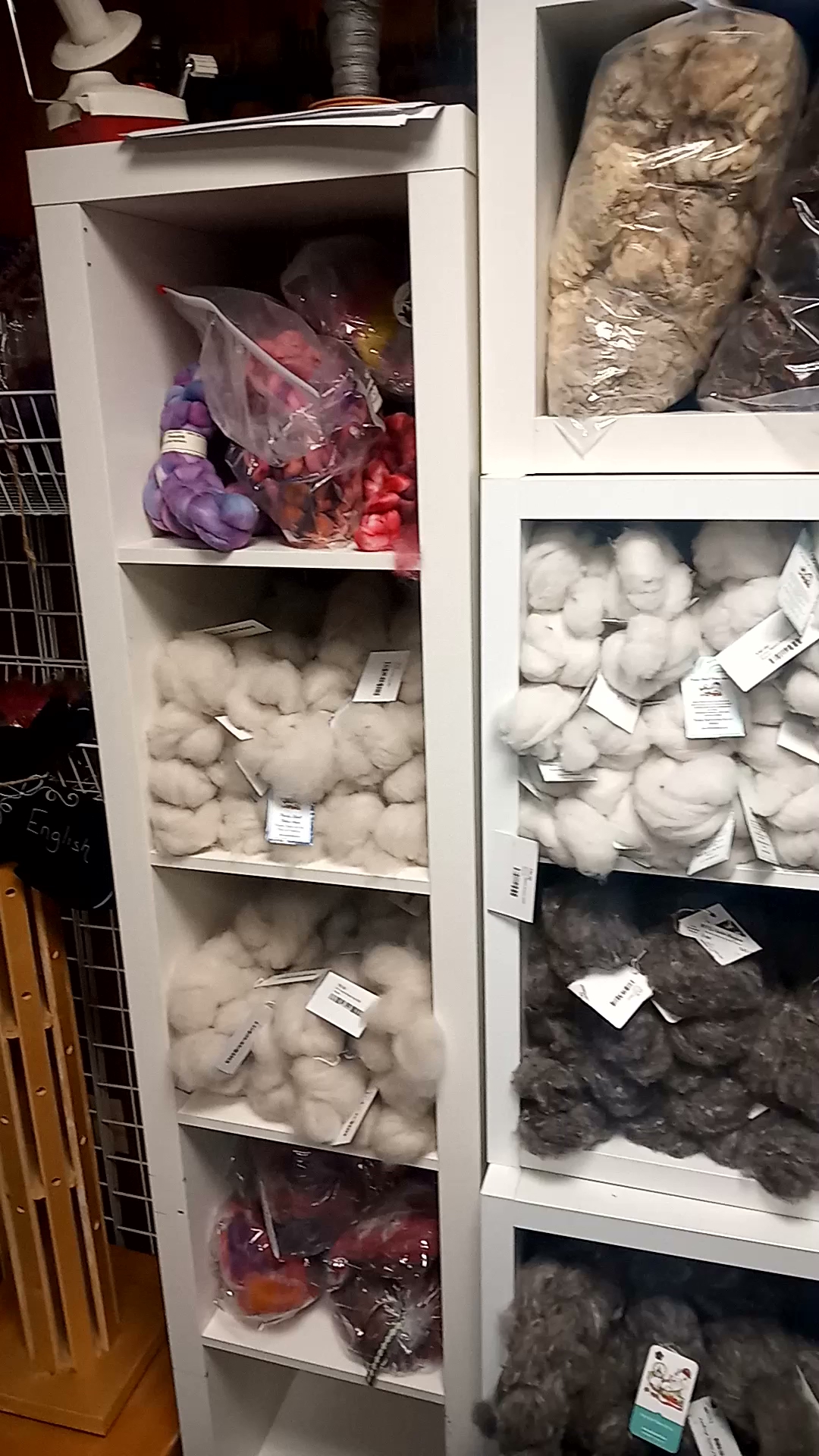 Firstly, the yarn shop does NOT smell of dogs! It smells like wool and dye if they happen to be dying that day. It's a very minimal scent and not chemical smelly. The yarn is absolutely beatififul, vibrant colors. Spinning yarn isn't a big industry that I know of. Just go see for yourself. These are pieces of art!