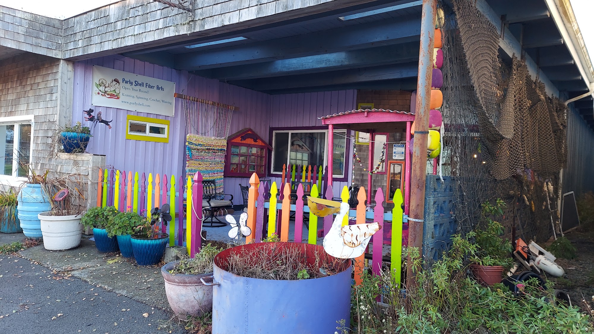 Purly Shell Fiber Arts LLC is a welcoming fiber shop located on the Washington coast, offering a wide selection of yarns and fibers for knitting, crochet, weaving, and spinning. The shop features locally dyed and grown yarns, vibrant and beautiful in color, along with premium needles and select commercial yarns. Customers can find spinning wheels and processing equipment from brands like Majacraft and Kromski. The store is known for its pleasant atmosphere, with a minimal scent of wool and dye, and no dog smell. The staff are friendly, knowledgeable, and ready to help with product selection and advice. Visitors appreciate the shop’s inviting environment, including an entry courtyard with demonstrations of yarn spinning during summer Saturdays and a view of the Port of Ilwaco marina. The shop is open seven days a week and has an online presence, making it accessible for shoppers beyond the local area. Many reviews highlight the friendly service, beautiful yarns, and the store’s ability to inspire new hobbies even for those who aren’t yet involved in fiber arts. Purly Shell Fiber Arts is a delightful destination for fiber enthusiasts and newcomers alike.