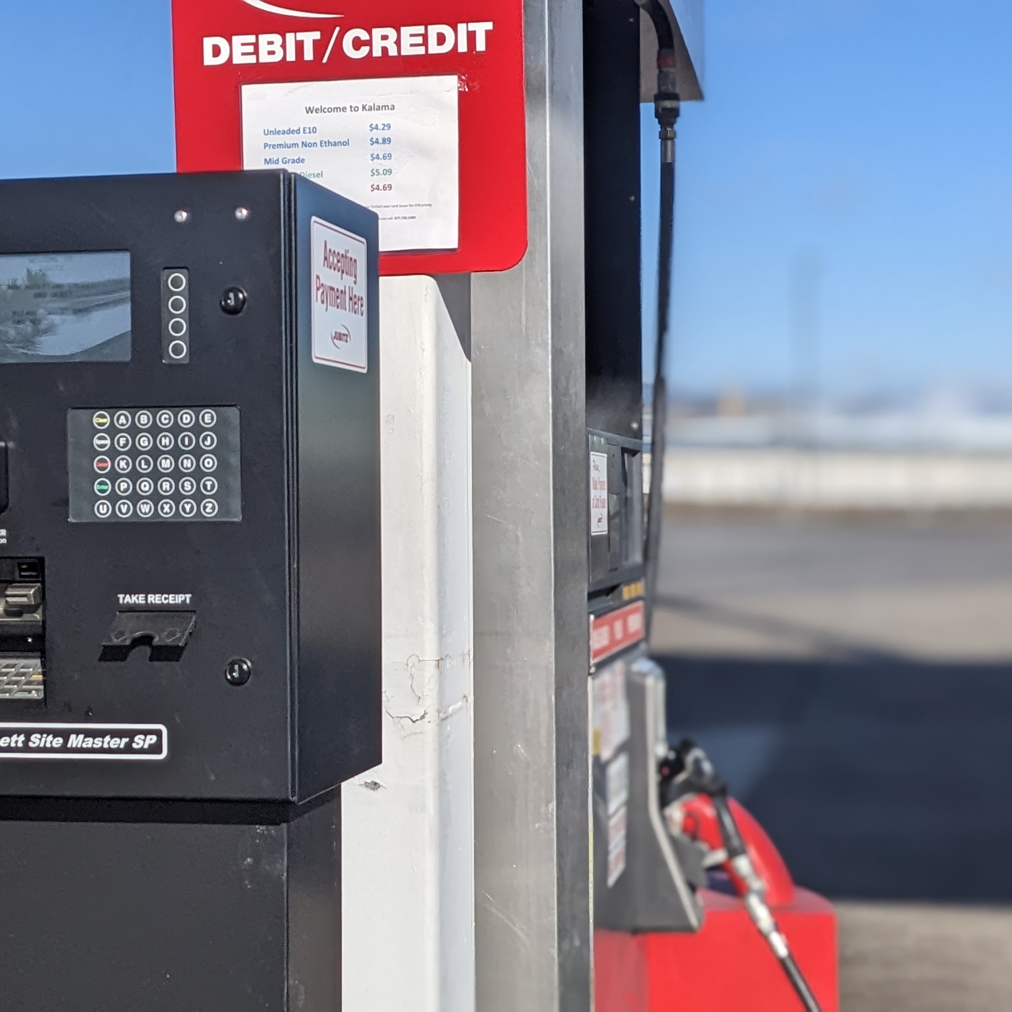 Takes debit and credit cards. Unmanned, self serve fuel station.