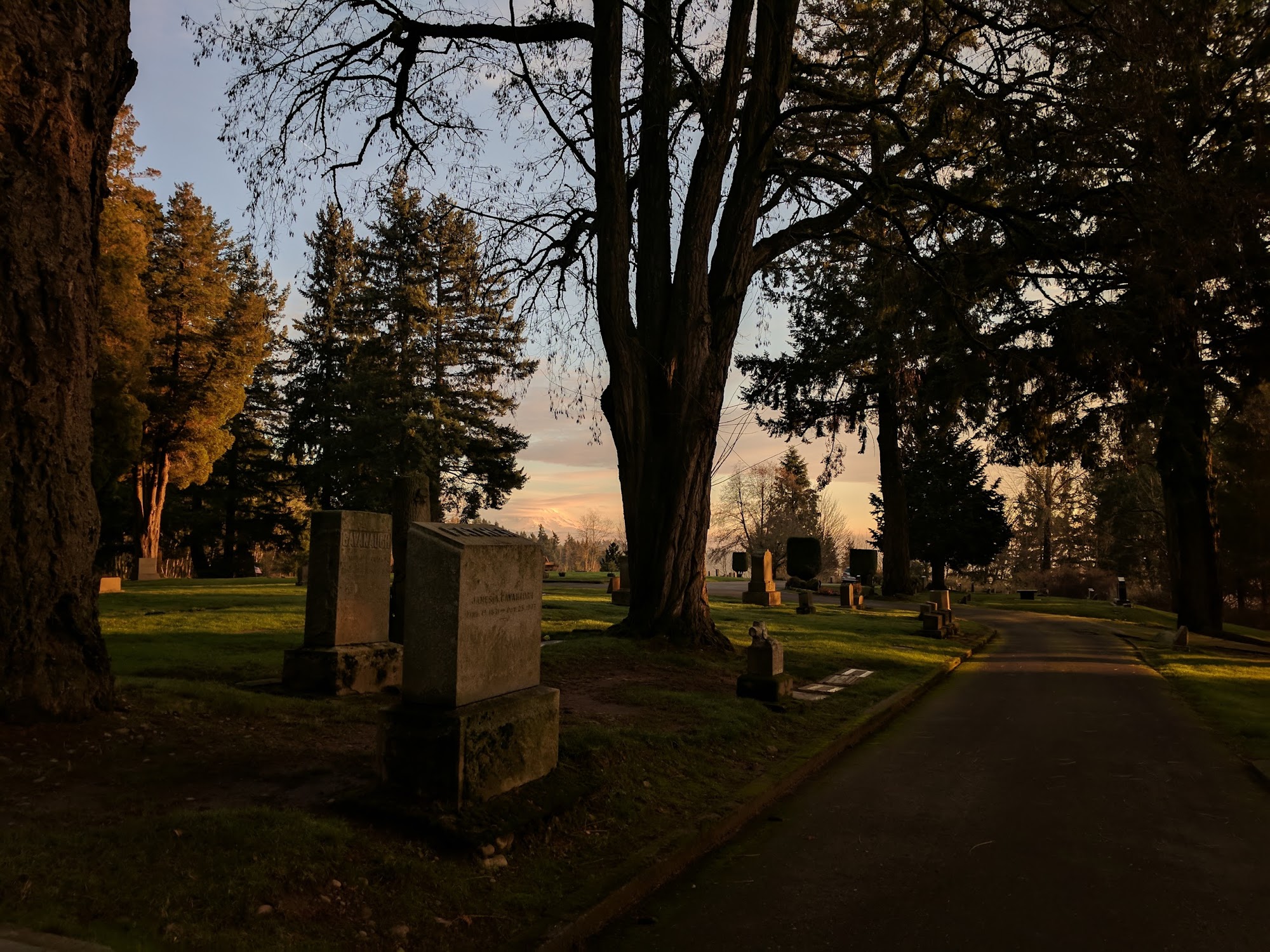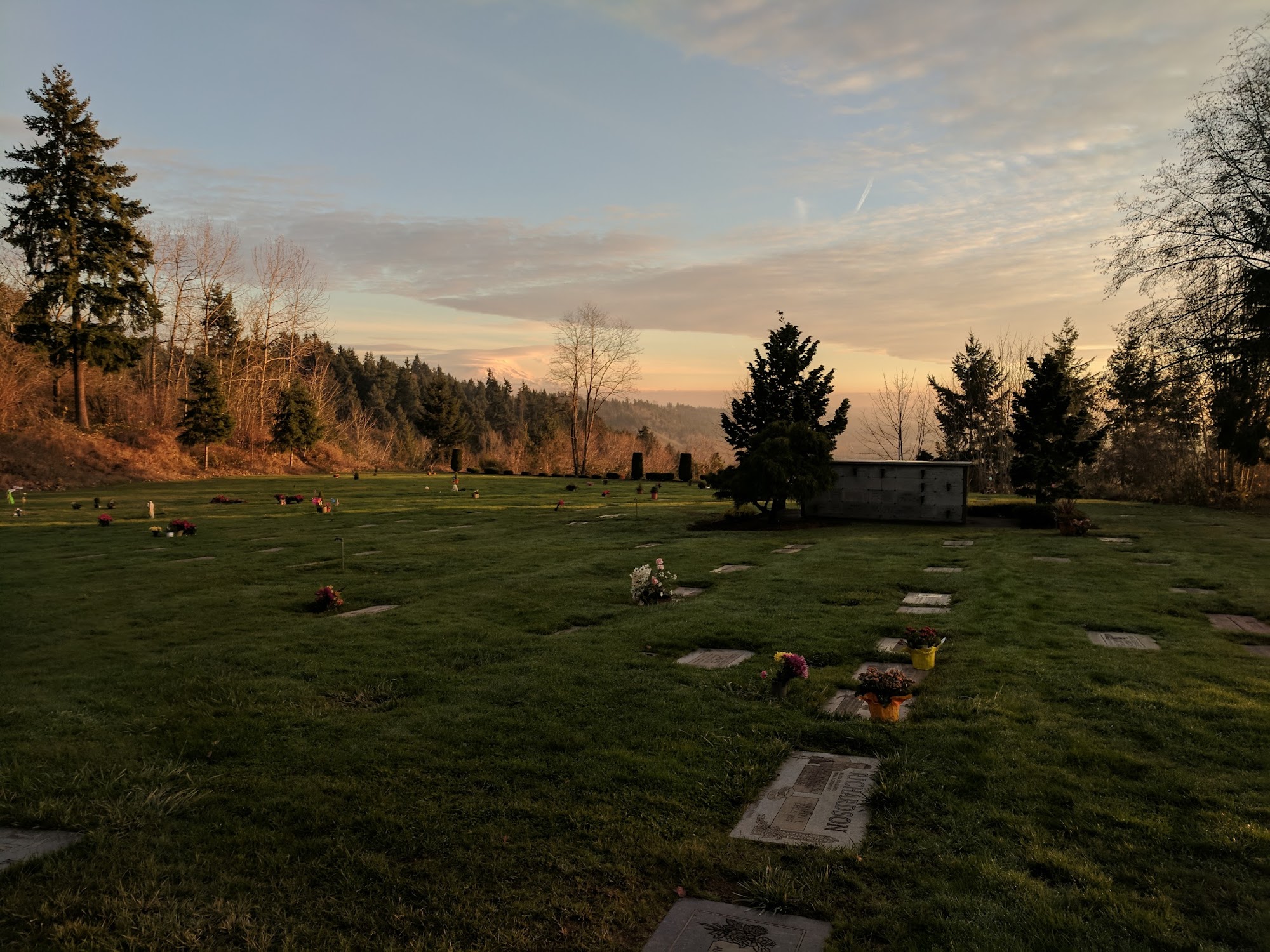 This is such a lovely and peaceful place to go for a walk in the morning. It has beautiful trees and gorgeous scenery. If you’re looking for a place to take some photographs or to pay respects to people who have passed away, and I highly recommend this burial park - stunning views of Mt. Rainier. Blessings!