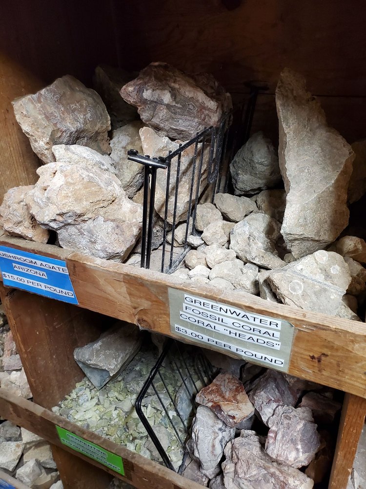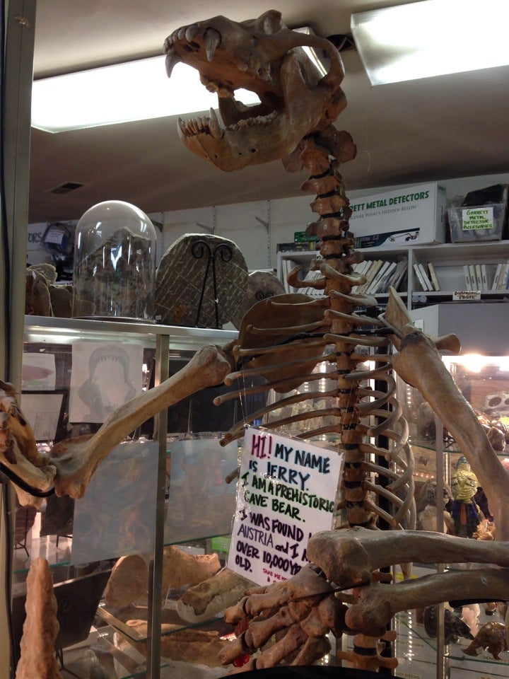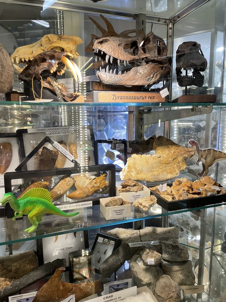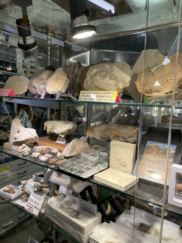 Doesn't look like much from outside, but inside is a different story. Rocks from all over, dinosaur bones, arrowheads, some rocks polished, some raw. Even meteorites. Jewelry. Staff friendly and helpful. Worth a look if you're in the area. Rather small parking lot, but some street parking.
