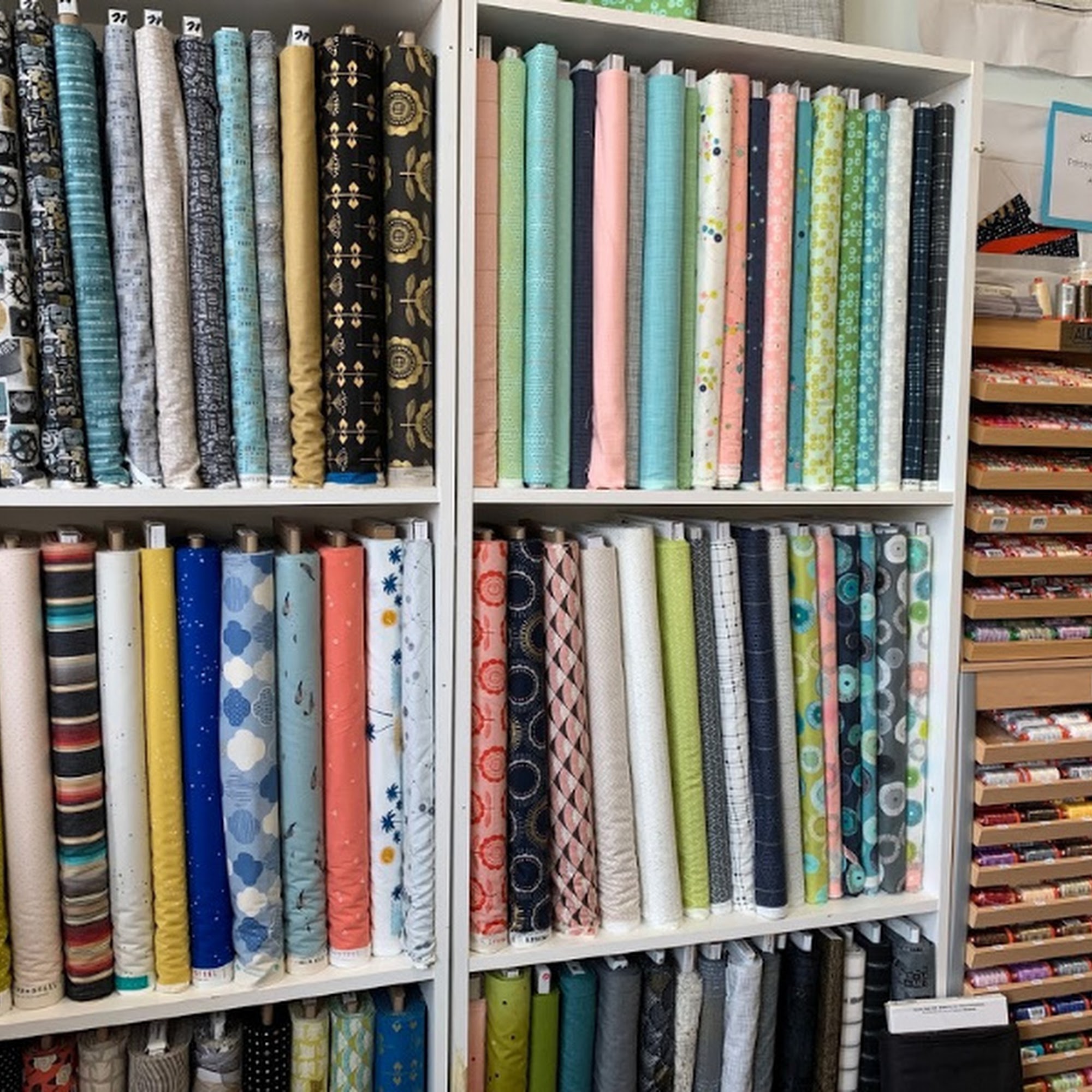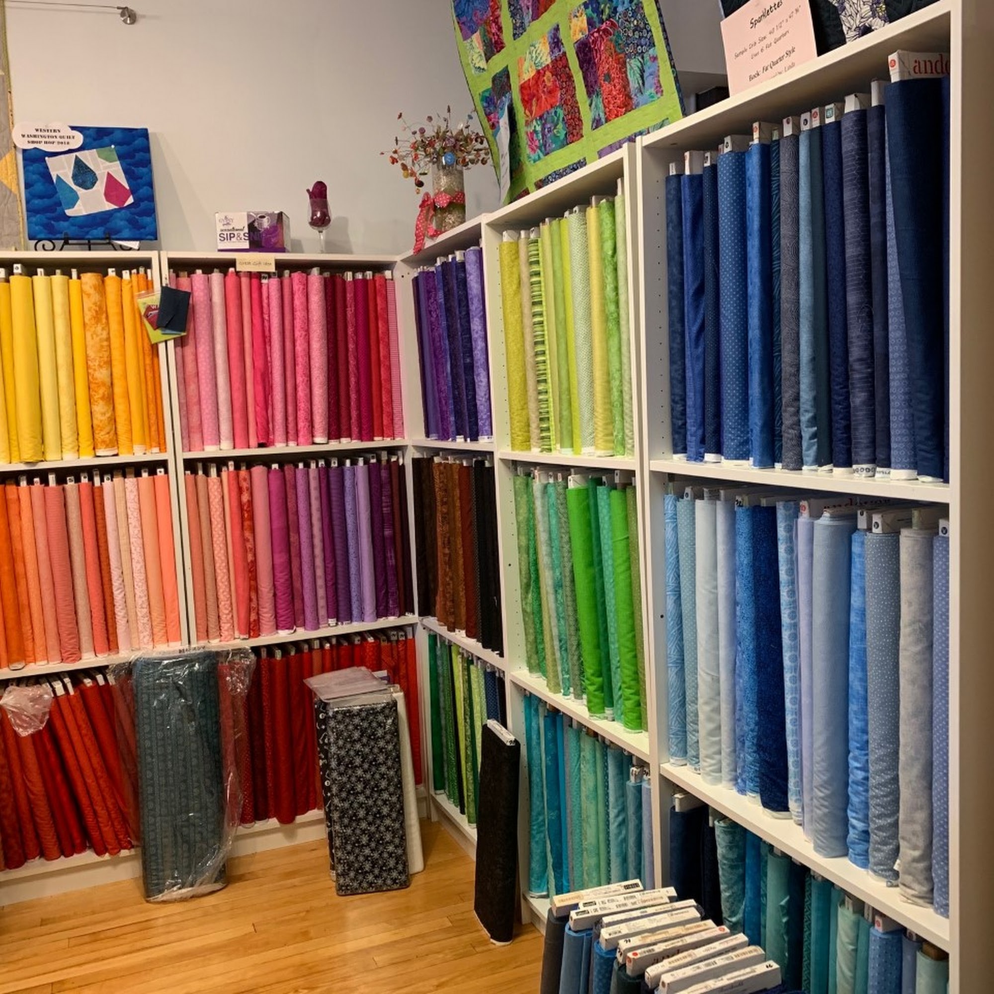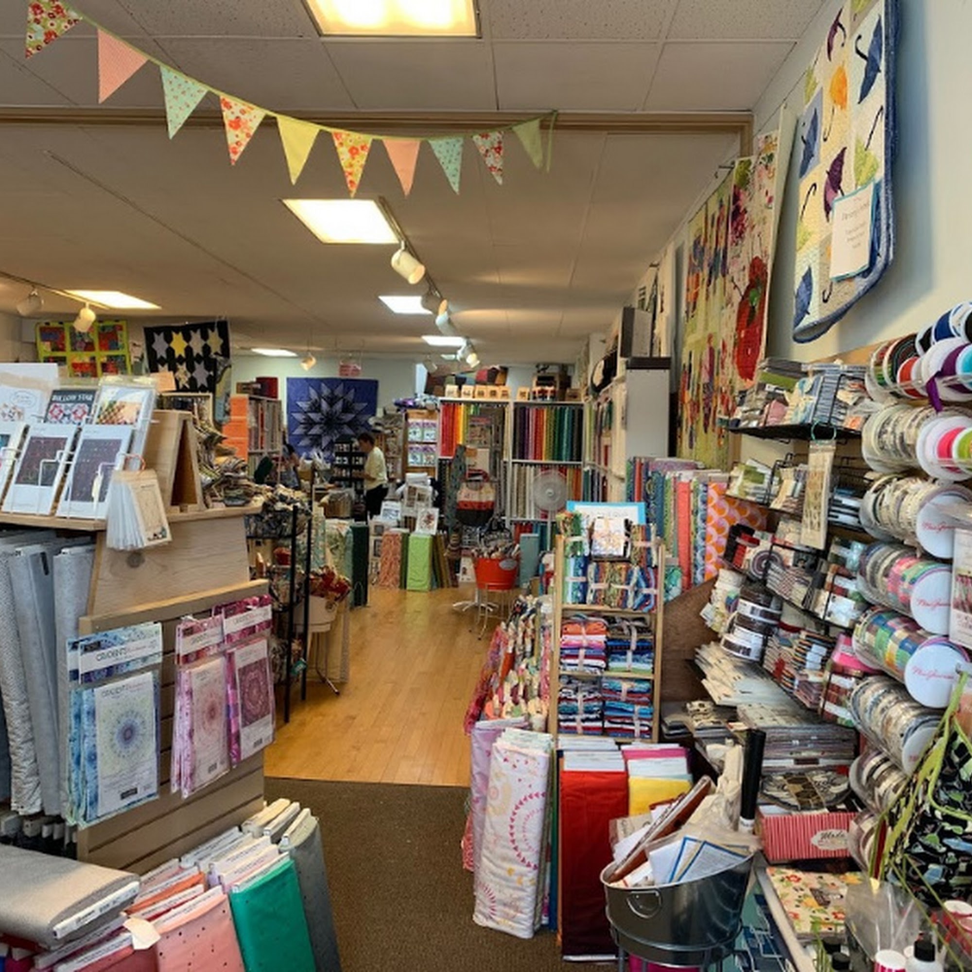 Running Stitch Fabrics is a very cute and delightful quilting shop located in historic downtown Kent. The shop is packed with a wonderful selection of quilting fabric from top brands and favorite artists, featuring better fabric quality and design. It carries a wide assortment of everything needed for projects, including notions, sashiko supplies, batting, thread, patterns, books, and more, much of which is not found in big box stores. There are quite a few quilt samples on display. The owner and staff are extremely helpful, super nice, and knowledgeable, offering patient assistance with project planning. They offer exciting classes, such as Sashiko, taught with positive energy. The shop also provides long arm machine rentals after a basic class or offers professional quilting services. While excellent for quilters, it also caters to other crafters with items like floss and transfer paper. The shop has on-street parking that is super easy and free. It is a great local shop highly recommended for a visit.