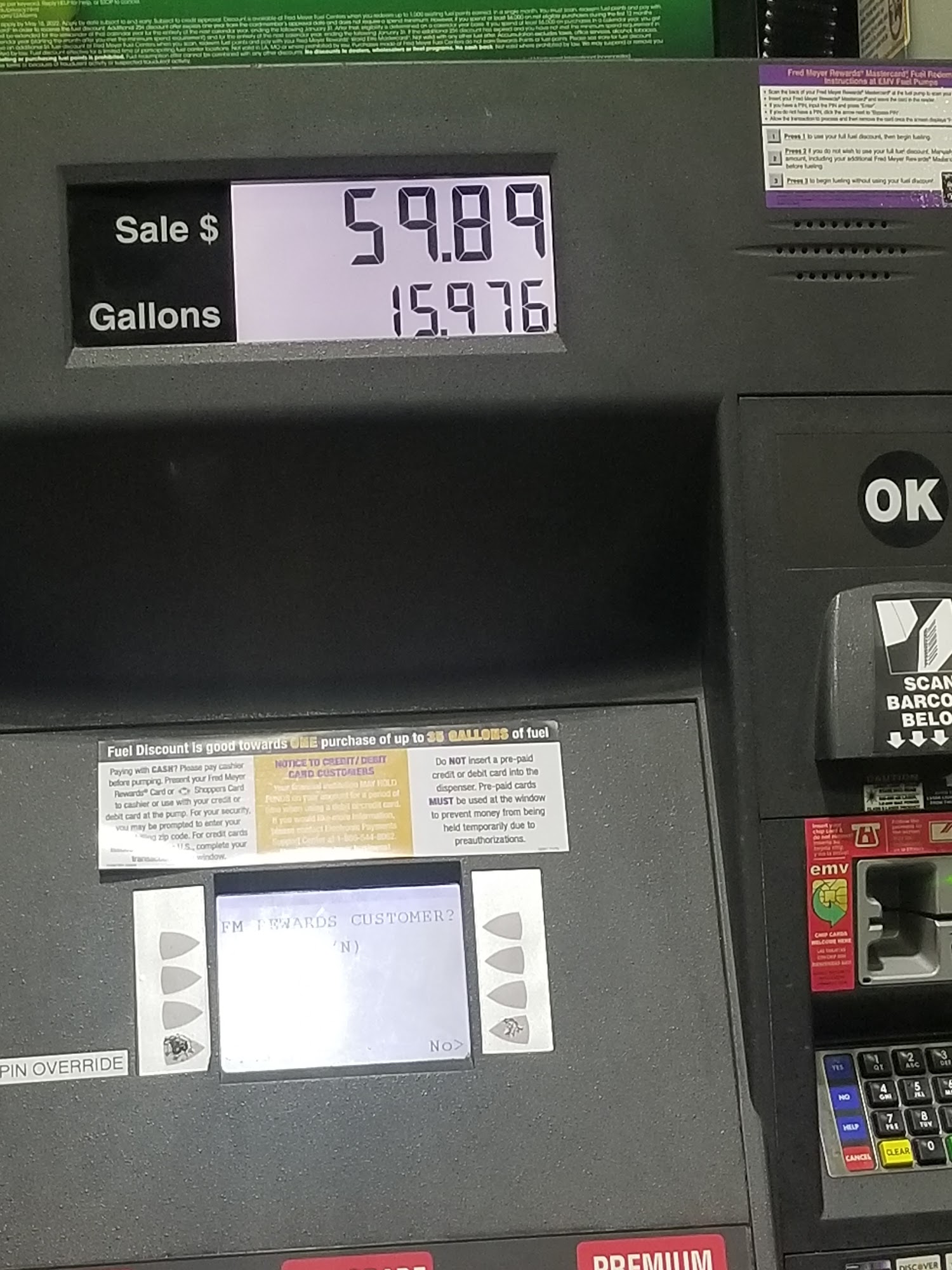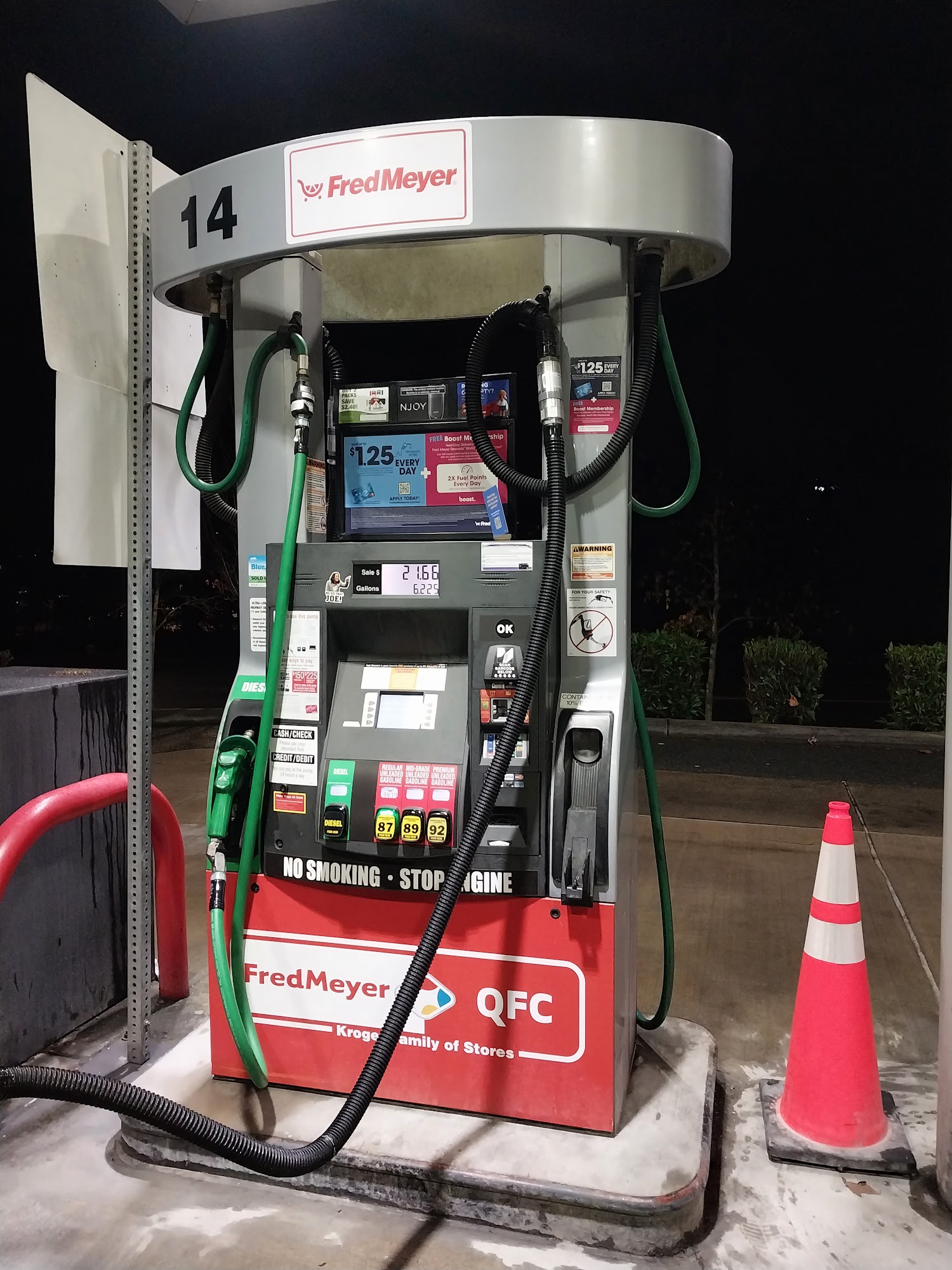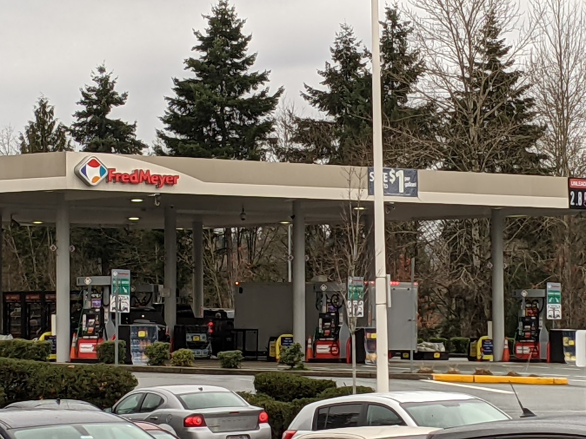 Good place for filling up. And really good prices if you used fredmeyer shopping rewards. You could get up to $1.00 per gallon off. If you continuously shopping @ fred Meyer. Many time prices here beat Costco gas prices by applying fredmeyer rewards