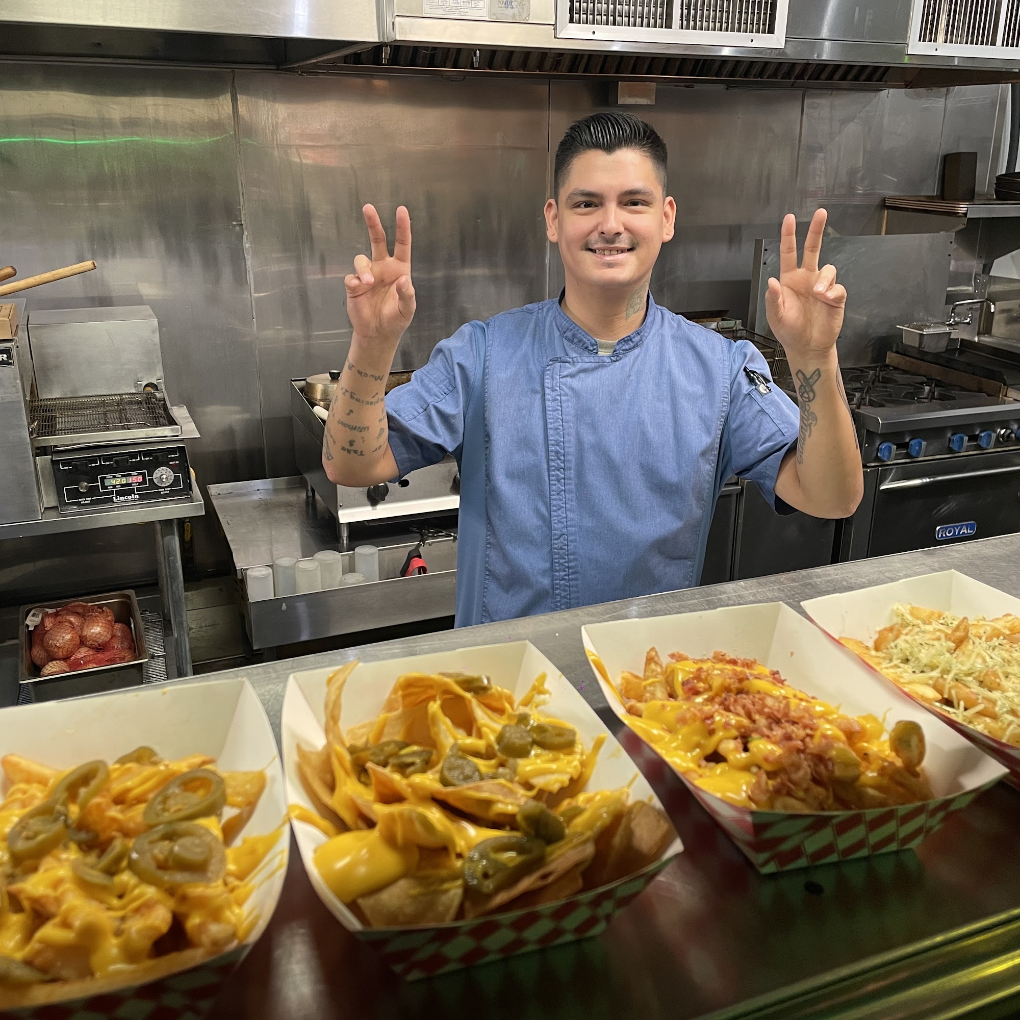 Fun place to dance and get some amazing fries. Everyone was friendly and just barely missed entering the raffle for the cash wind cage!