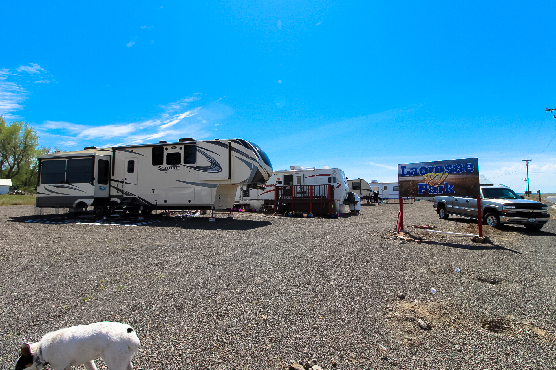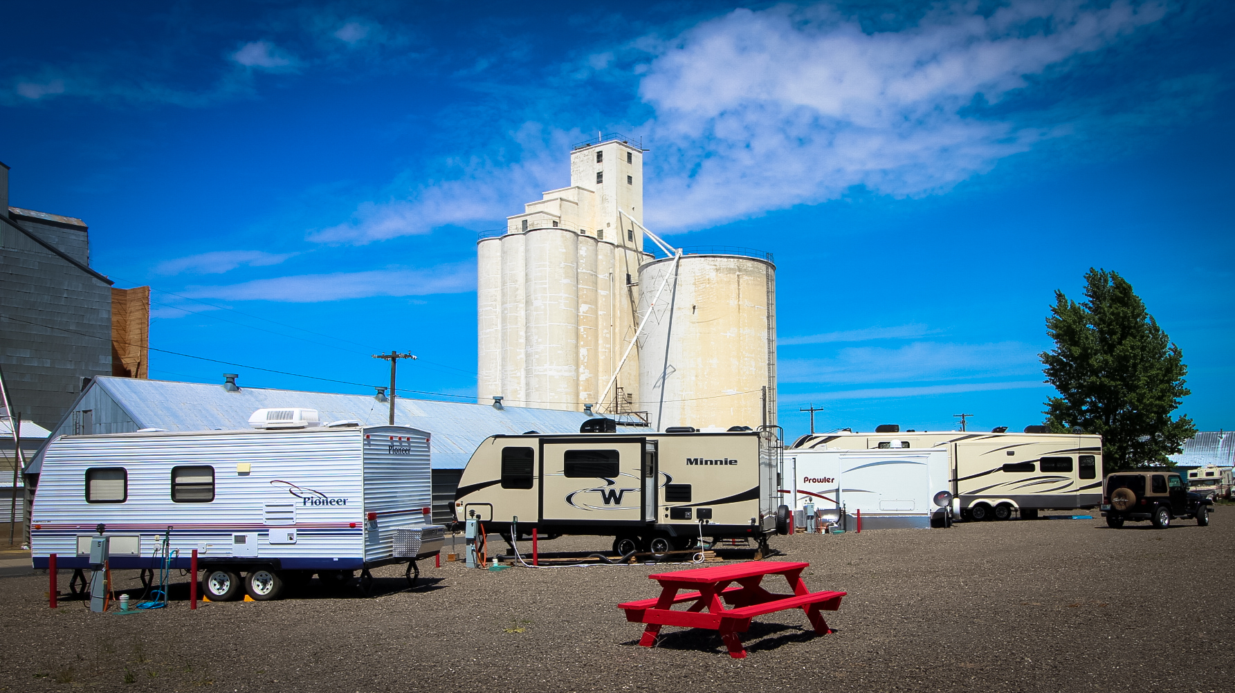 All the hookups you need and a well maintained gravel lot. Basic, but Shawn keeps it clean and gives friendly service. Also there's a good horseshoe pit set up if you play that.