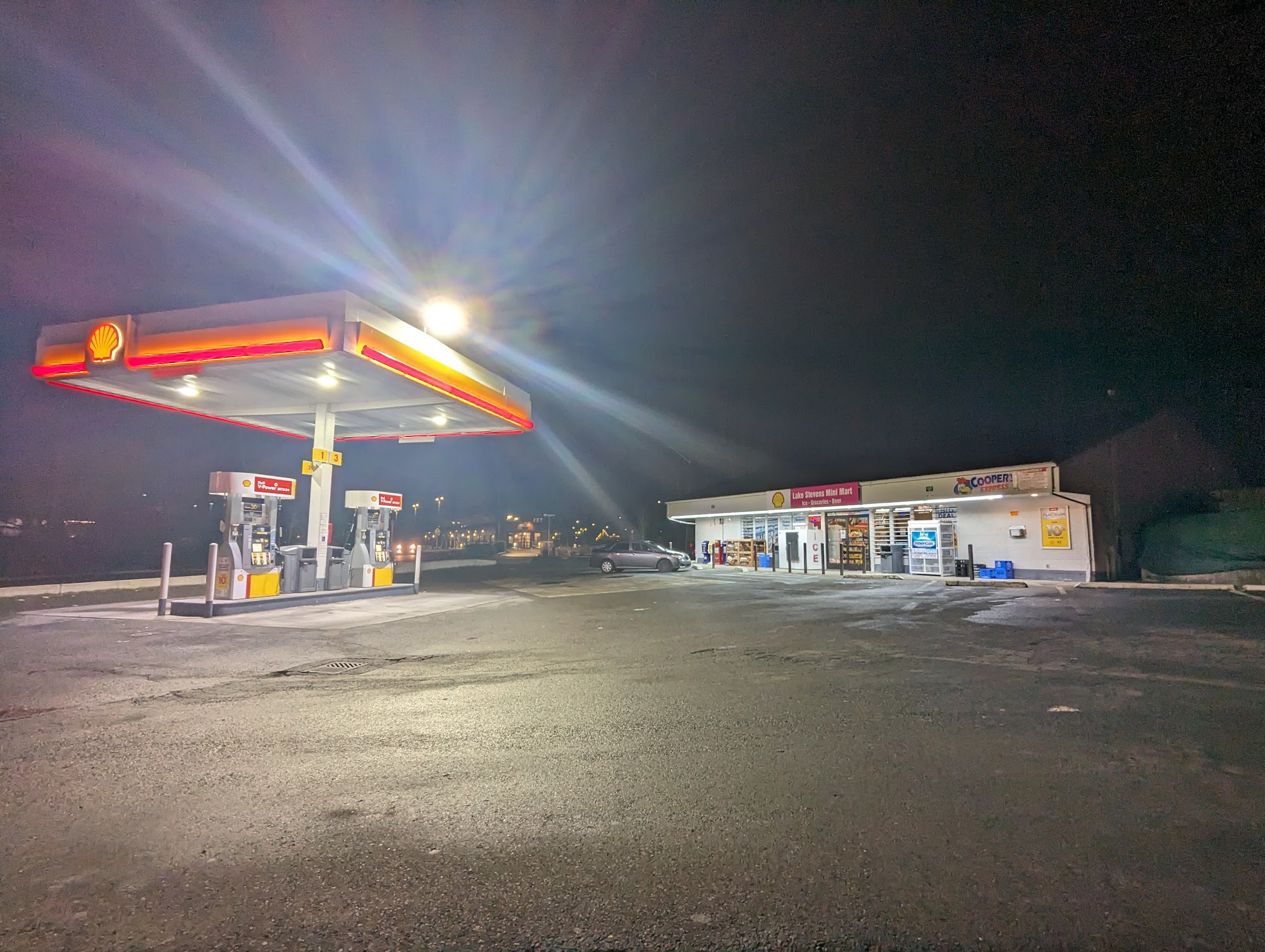 Convenient store with 4 pumps of Shell gas. If you want to get chicken, this parking lot is for you.