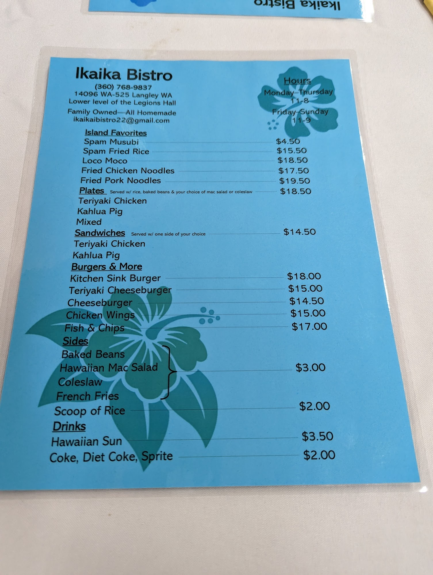 Amazing food, service and great quality all around! Love that they have gluten free options. If you’re looking for a great meal in Langley, WA, this is the place! Try the Kahlua Pork! Best I’ve had in ages!