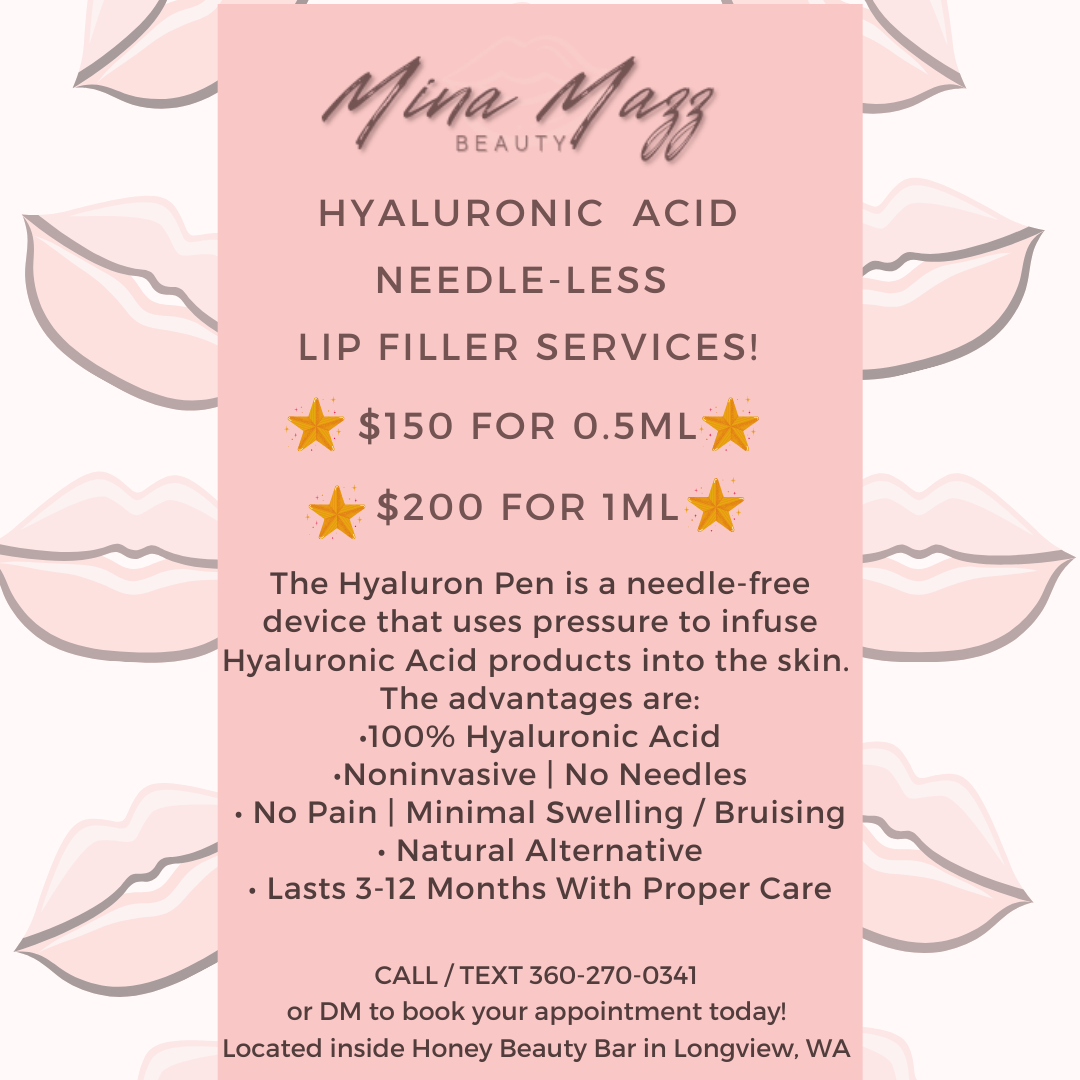 Mina Mazz Beauty, established in June 2021, is a Longview-based beauty salon specializing in needleless lip fillers and hair services. I am a certified expert with over a decade of experience, offering clients a natural-looking and long-lasting alternative to achieve fuller lips. I am currently accepting new clients for both our beauty and hair services.